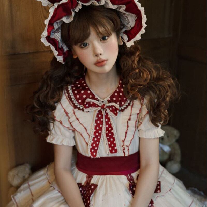 フリルとリボンがやさしく調和し、甘ロリらしい世界観を引き立てます。
