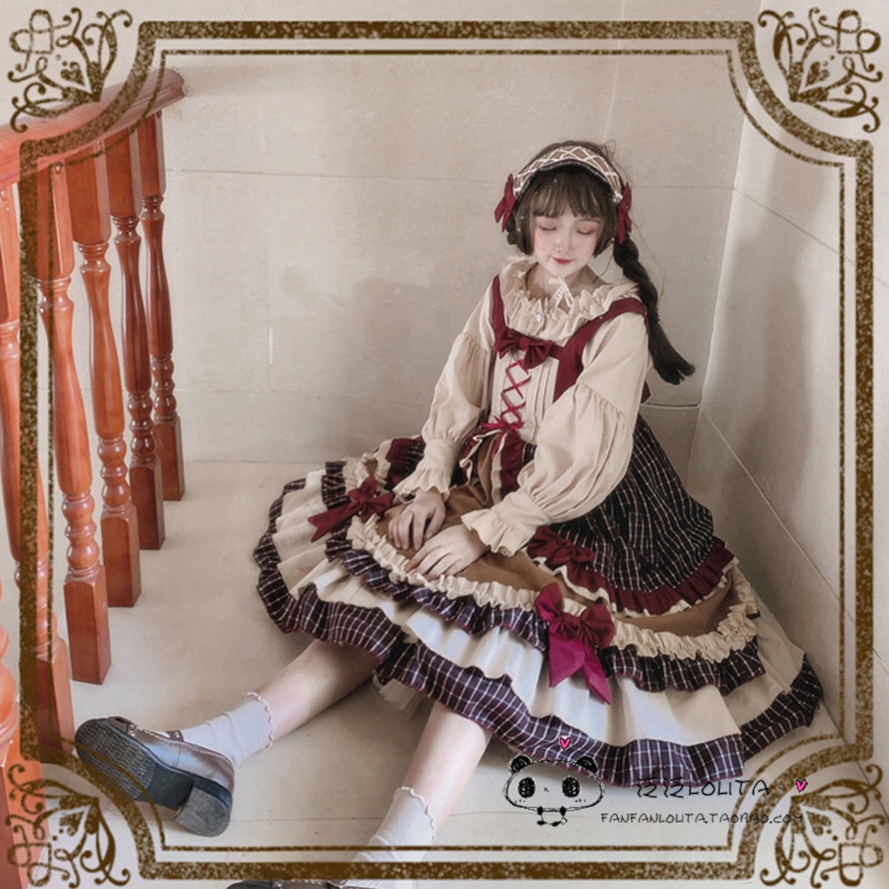 ・ボルドー×チェック柄を基調とした甘ロリ・クラシカルデザイン