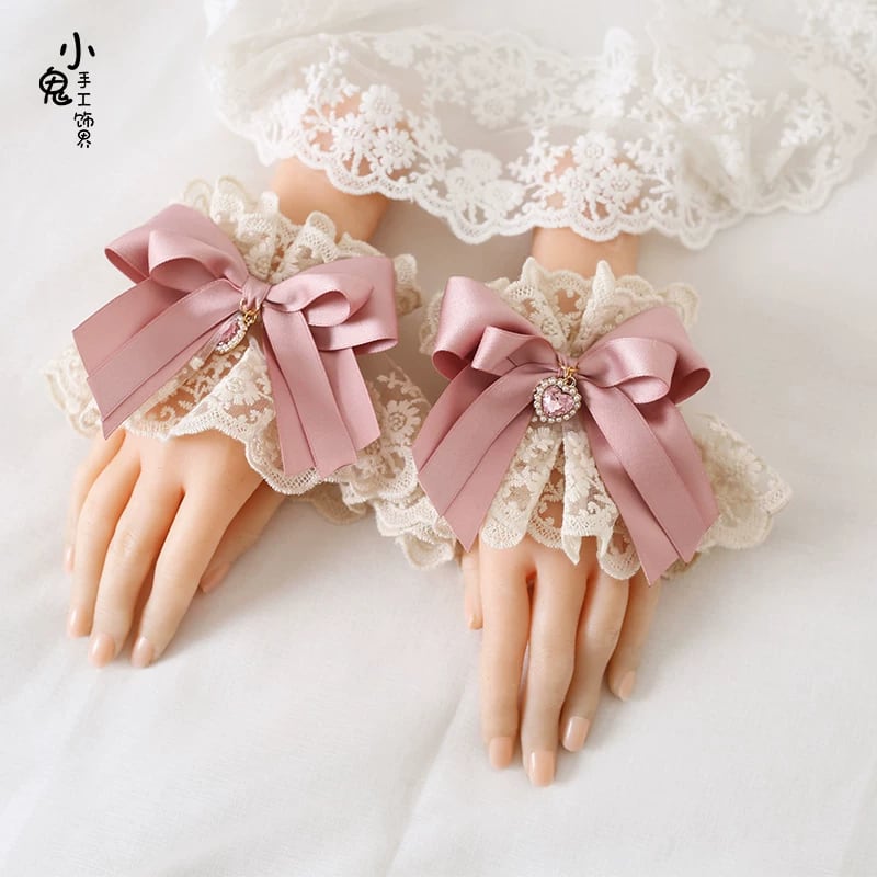 クラシカルロリィタ向け レースフリルハンドカバー(左右セット)|リボン×ビジューが映える上品アクセサリー