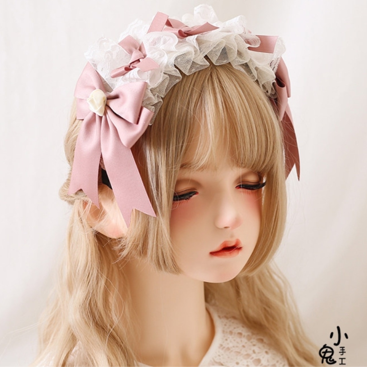 クラシカルロリィタ対応 フリルレース×リボン ヘアバンド&ヘアアクセサリー 多用途セット
