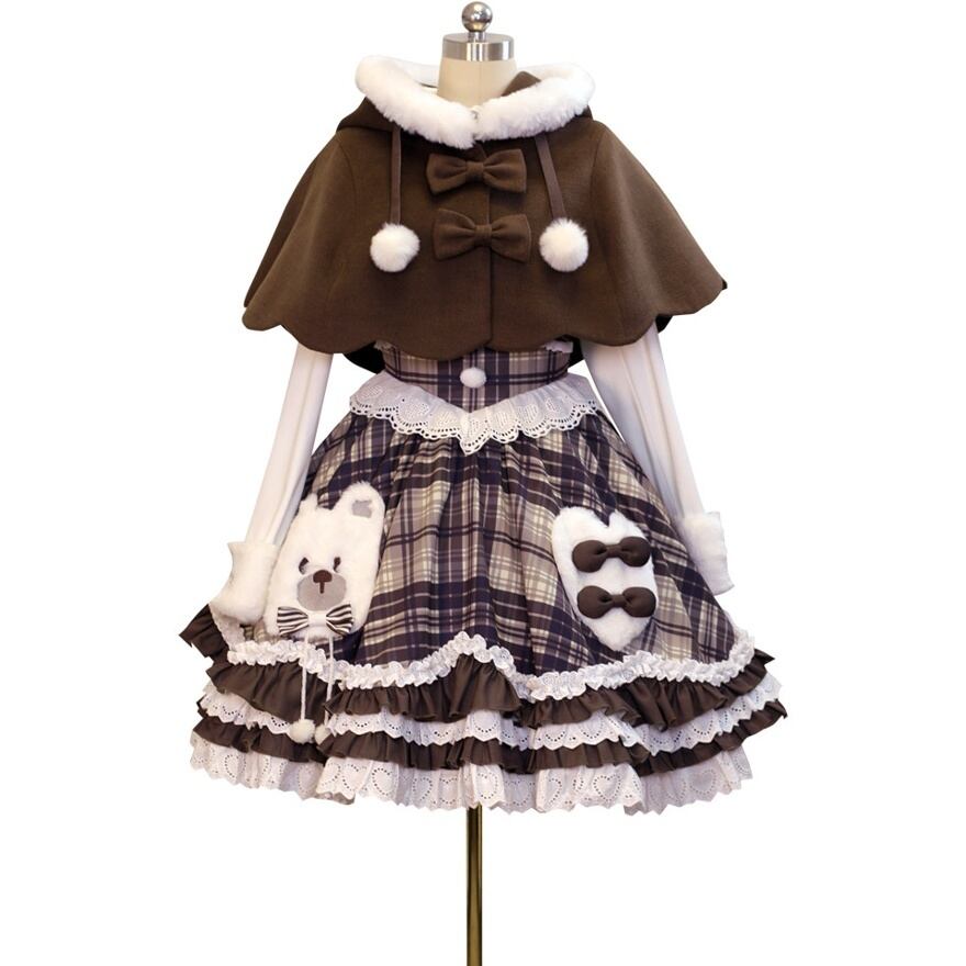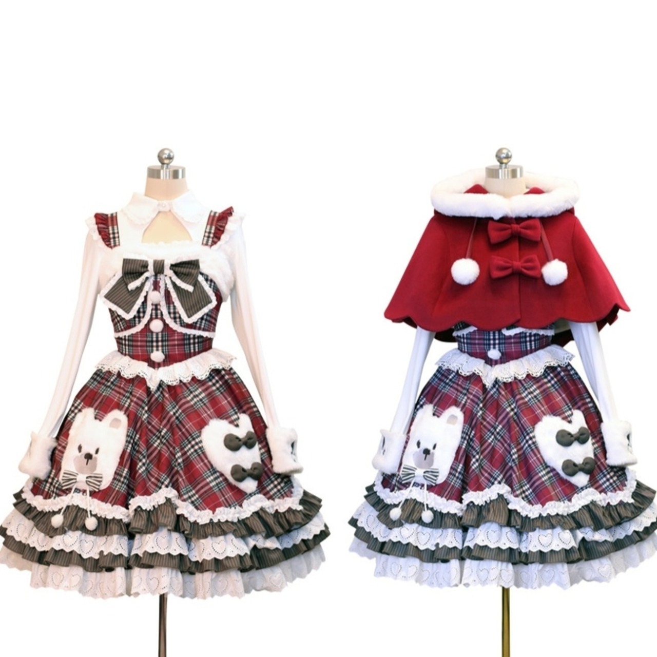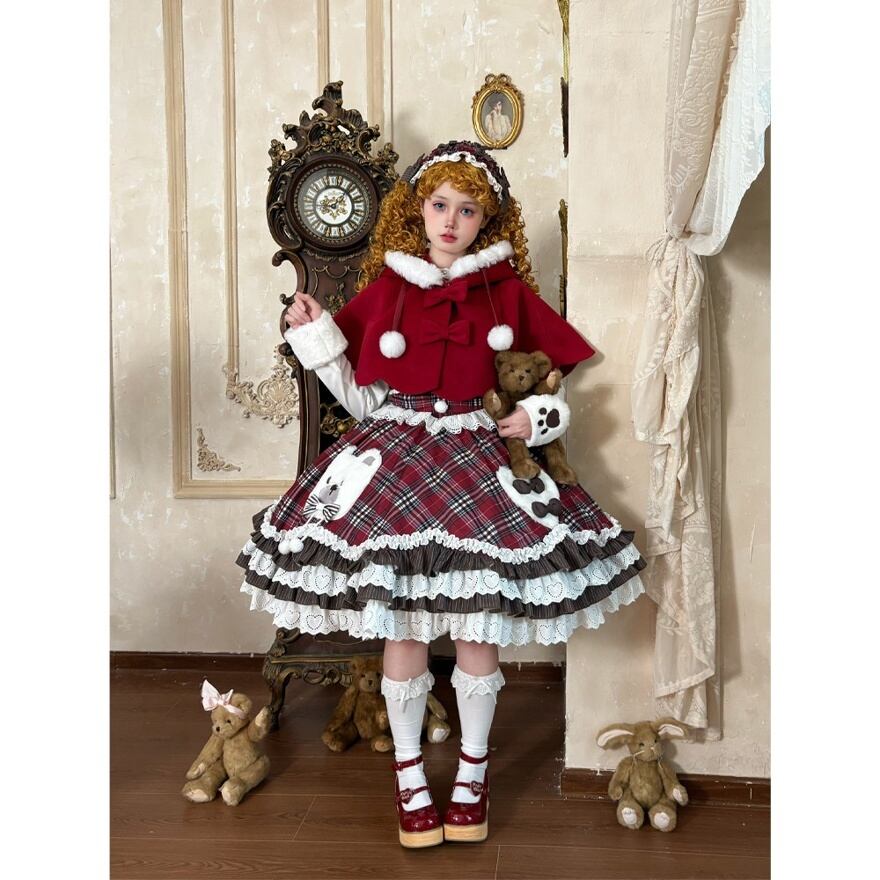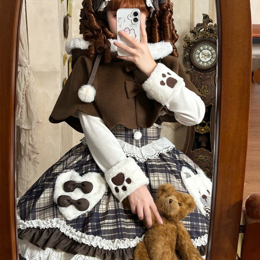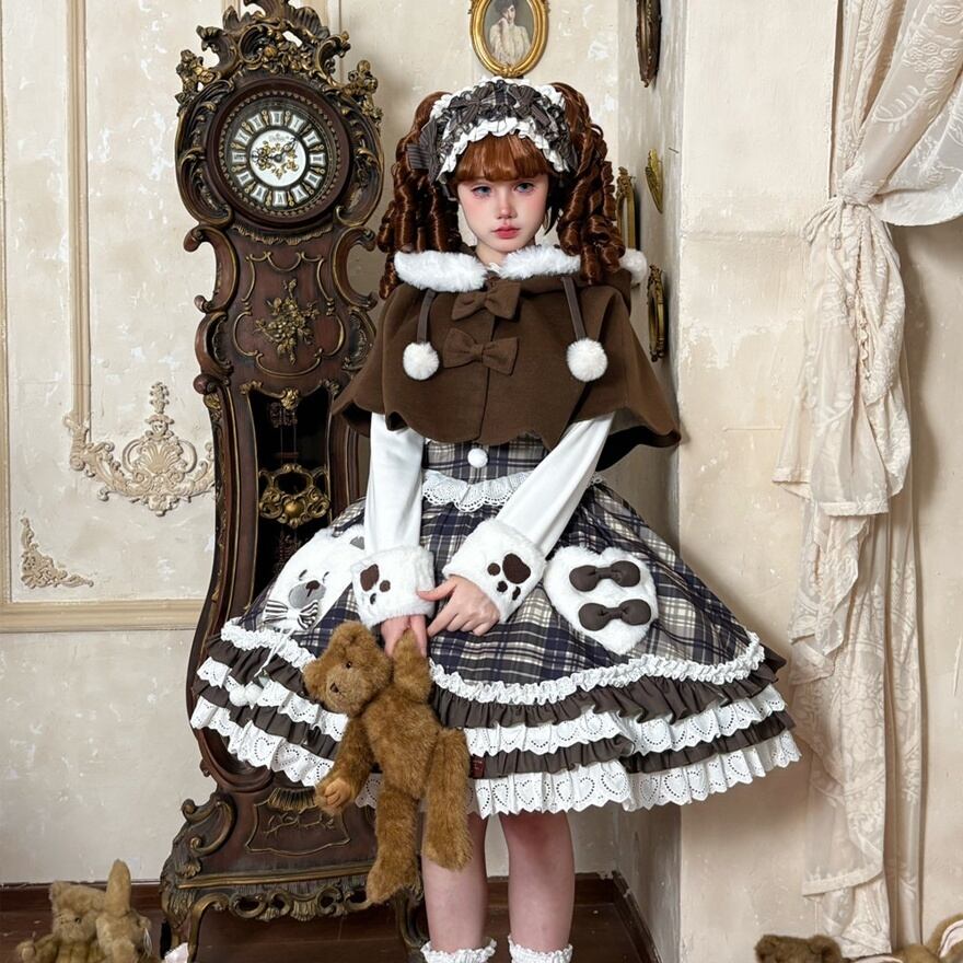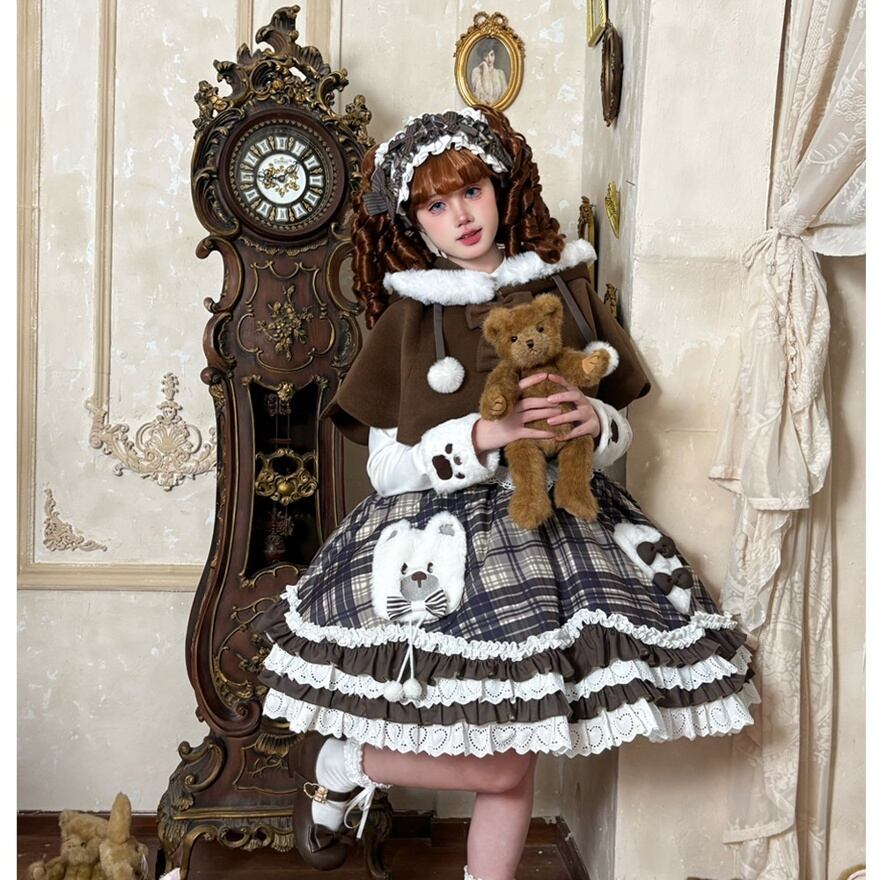 抱きしめたくなる愛らしさ|冬の主役は「くまさんロリータ」で決まり!豪華ケープ付きチェック柄ワンピースセットアップ