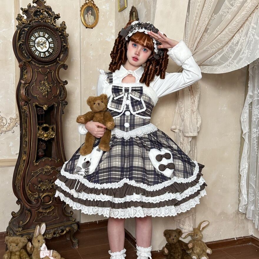 ・チェック柄JSKにクマモチーフとフリルを組み合わせた、冬らしいロリィタデザイン