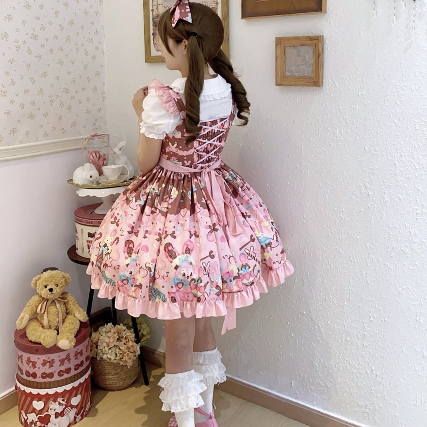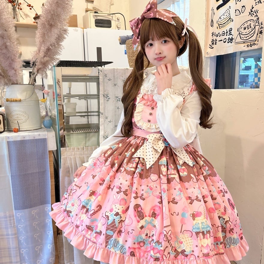 【はじめての甘ロリに】ふんわり可愛い うさぎスイーツ柄ジャンパースカート