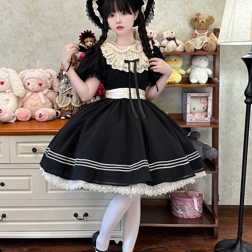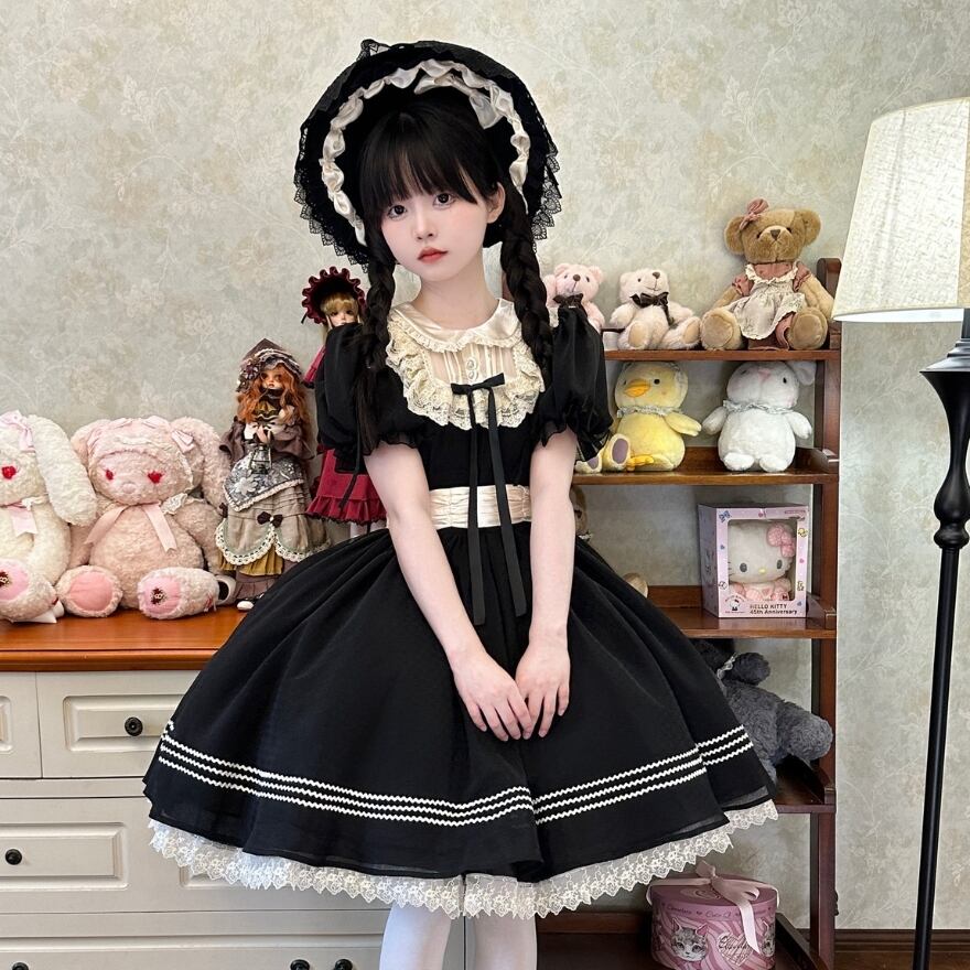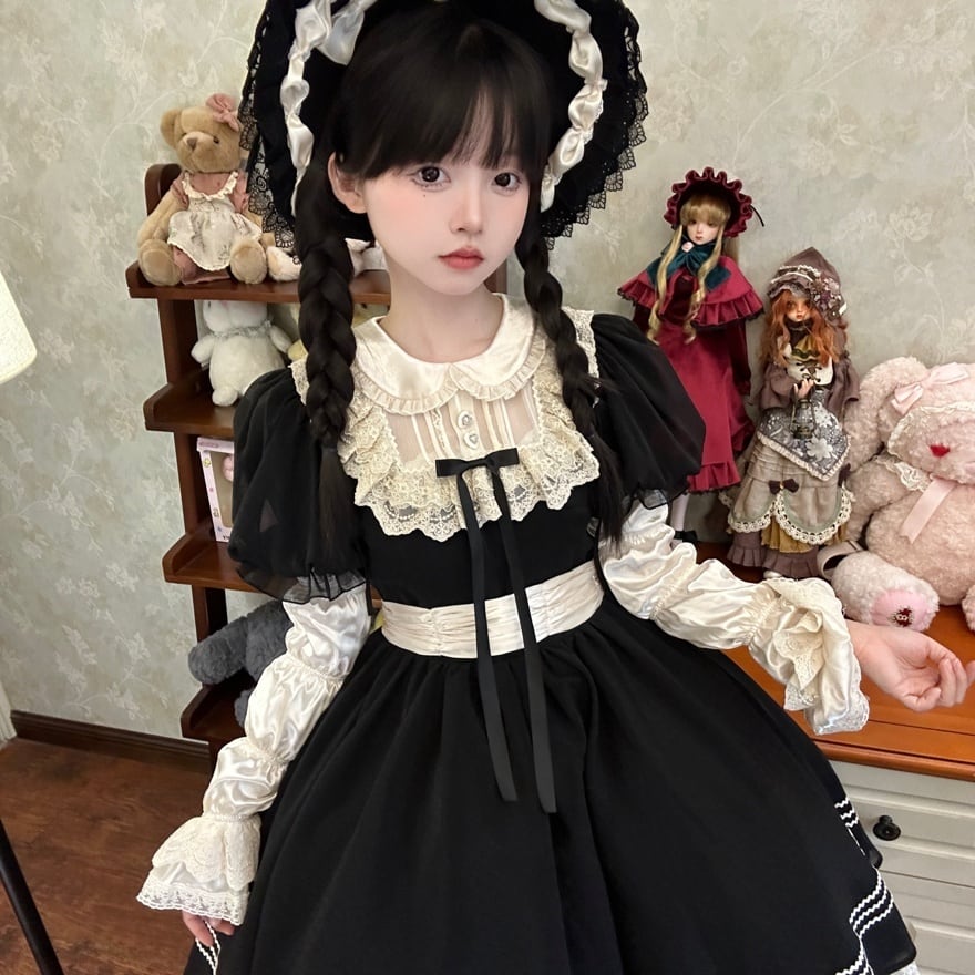 ・黒ワンピースに生成レースとリボンを合わせたクラシカルゴスロリデザイン