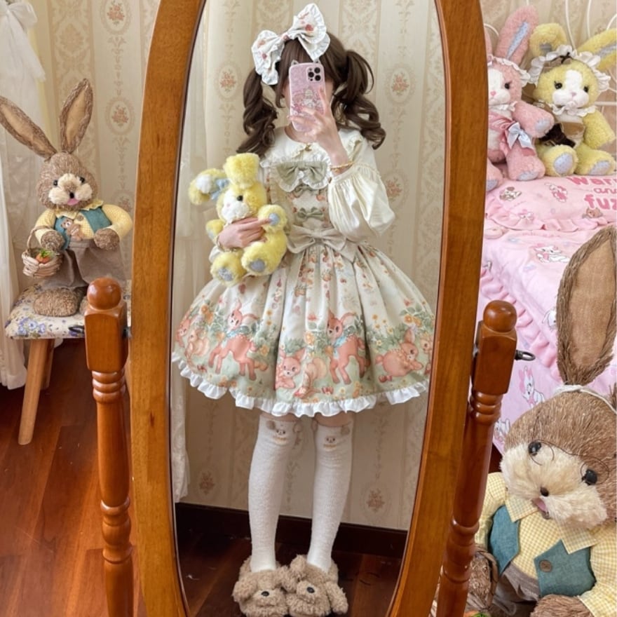 森のお茶会みたいな 鹿さんプリント 甘ロリ ワンピース|はじめてでも「可愛い」が完成する一着