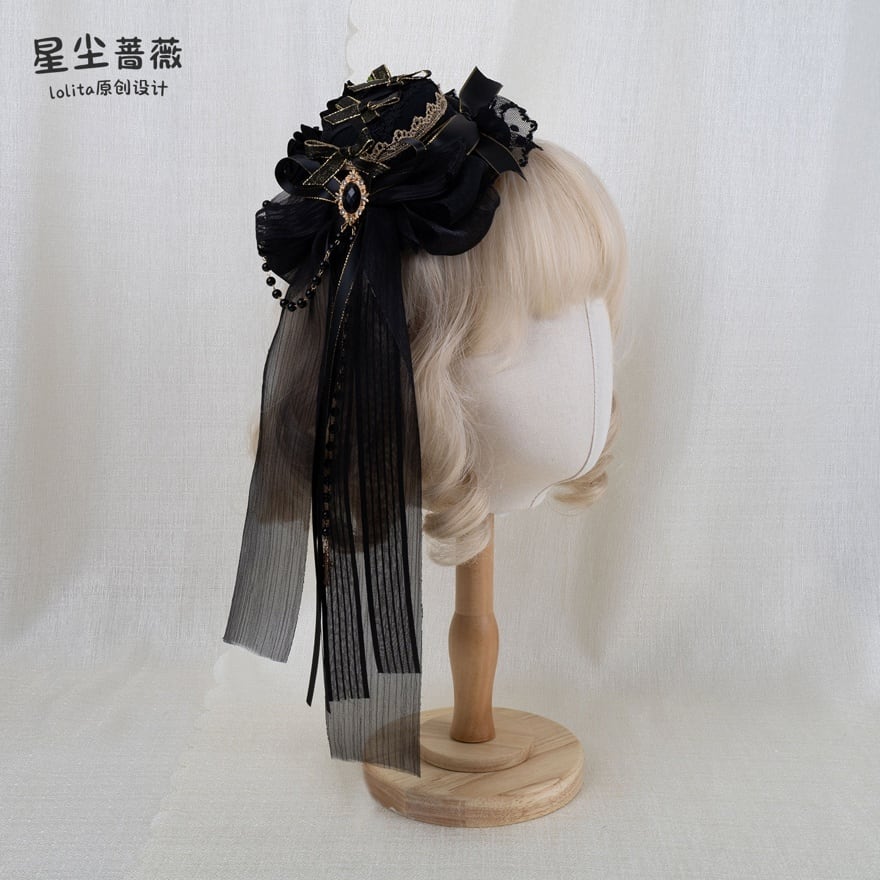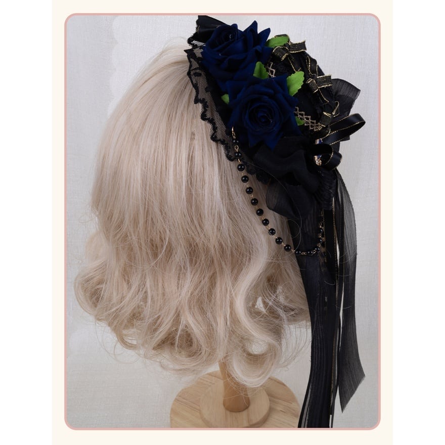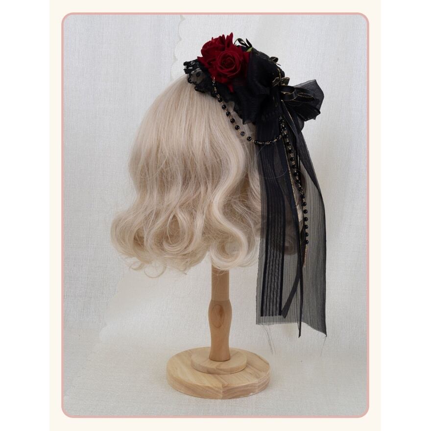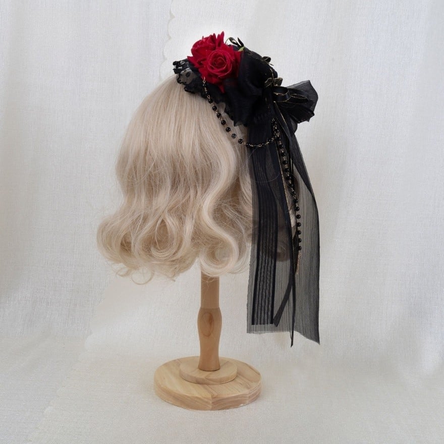 華やかさはありながら主張しすぎず、初めてのロリィタ小物としても取り入れやすい設計です。被るだけで「物語の登場人物」になれるような、装いの余韻を残すヘアアクセサリーです
