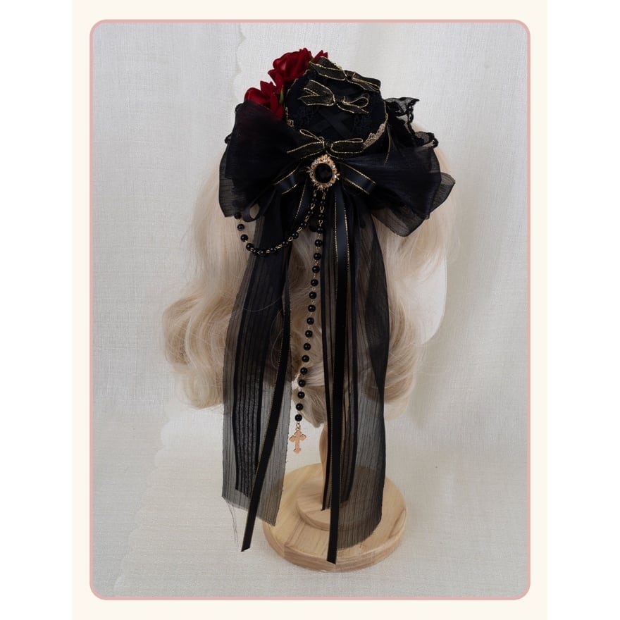 物語を纏う 薔薇とチュールのミニハットヘッドドレス|ロリィタコーデ仕上げ小物|Alicestyle