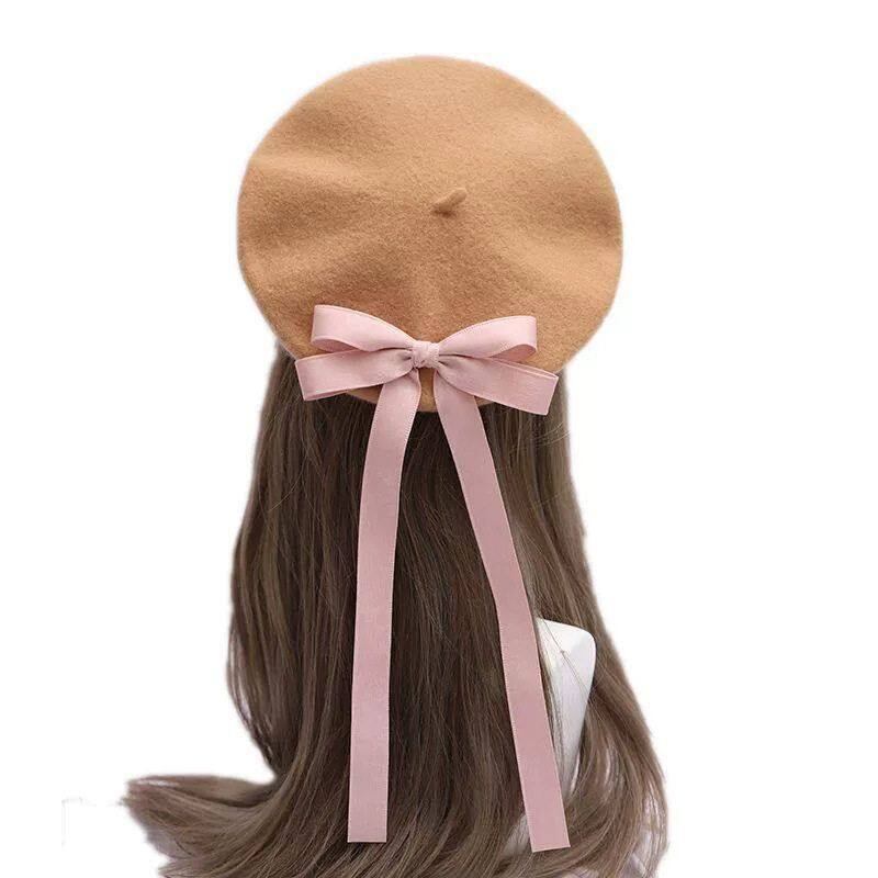 ふんわりとした質感のベレー帽に、揺れるリボンをあしらった上品なデザイン。