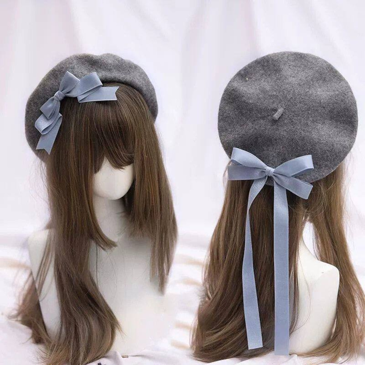 やさしい起毛感のベレー帽に、後ろ姿を彩る長めリボンを添えたロリィタ向け帽子です。主張しすぎない色合いで、甘ロリからクラシカルまで幅広く合わせやすいのが魅力。帽子に慣れていない初心者さんでも、かぶるだけでコーデが完成し、自然と世界観に溶け込めます。2行分の空欄