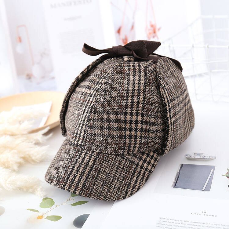 → 落ち着いたチェック柄と小ぶりなデザインで、初心者でも自然に合わせやすい探偵帽です。