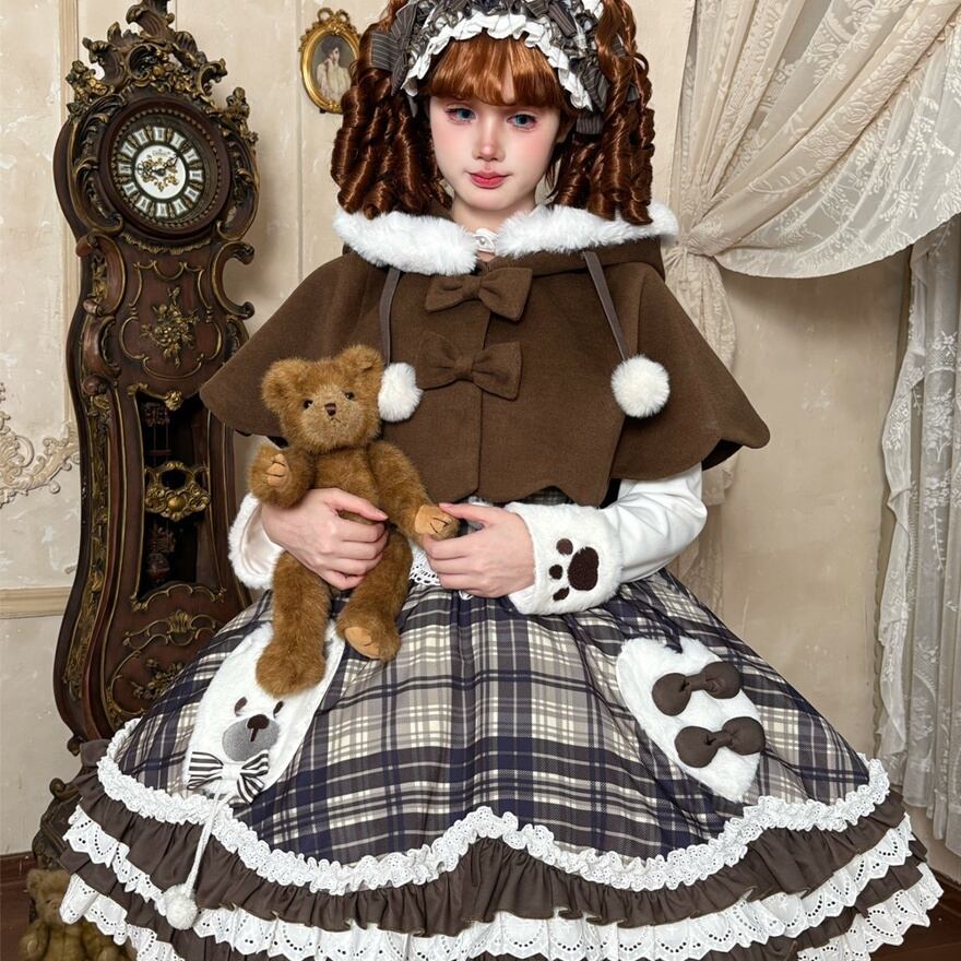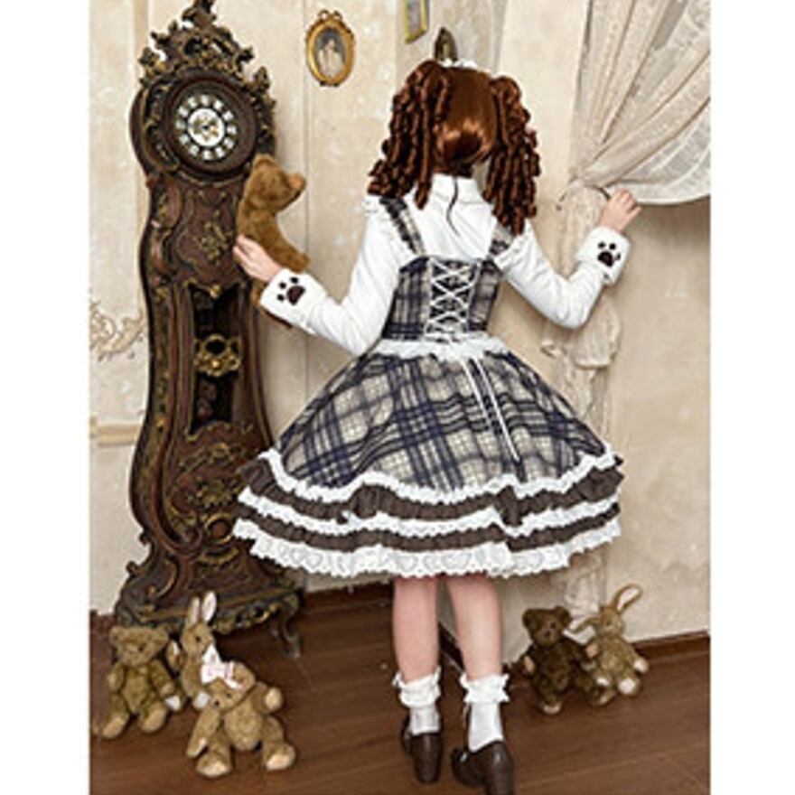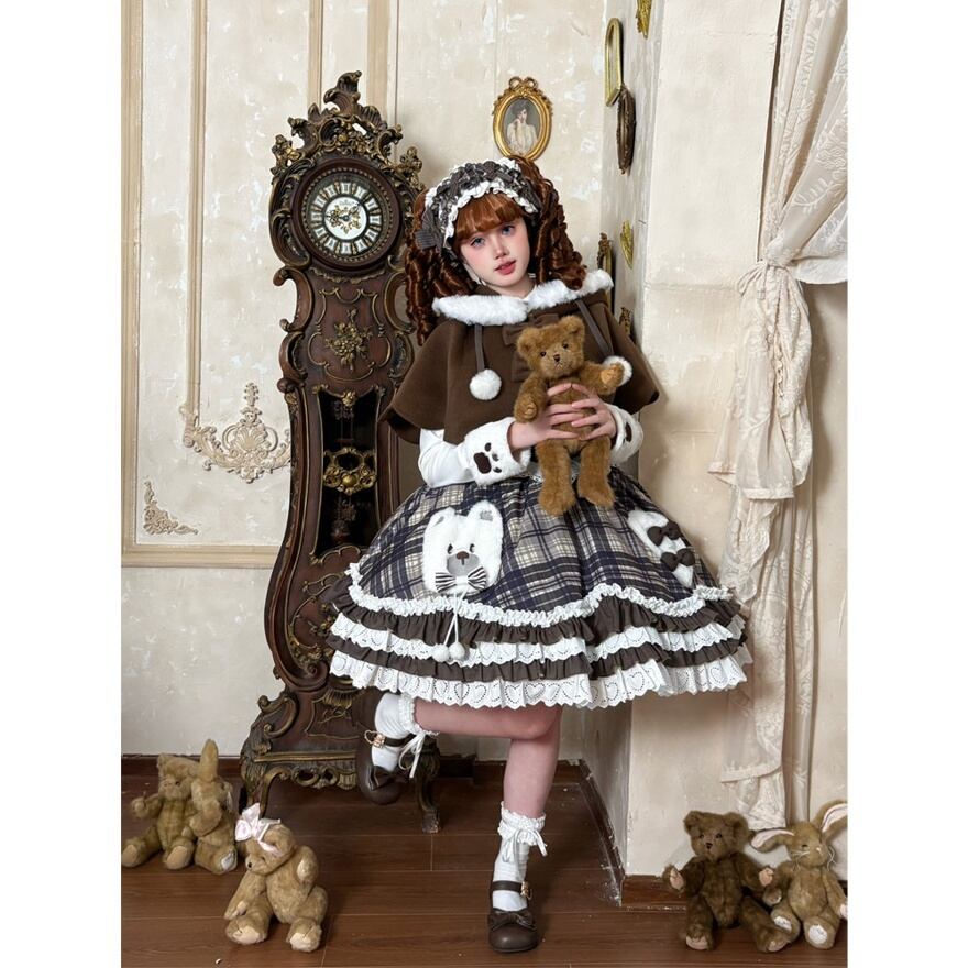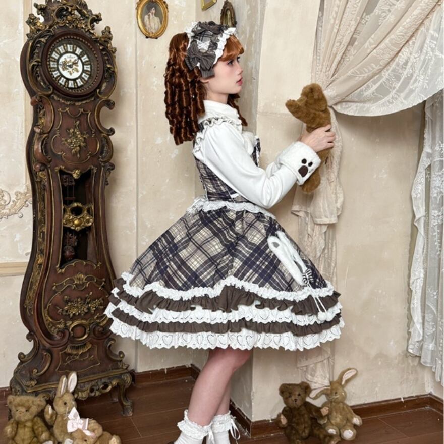 ・チェック柄JSKにクマモチーフとフリルを組み合わせた、冬らしいロリィタデザイン