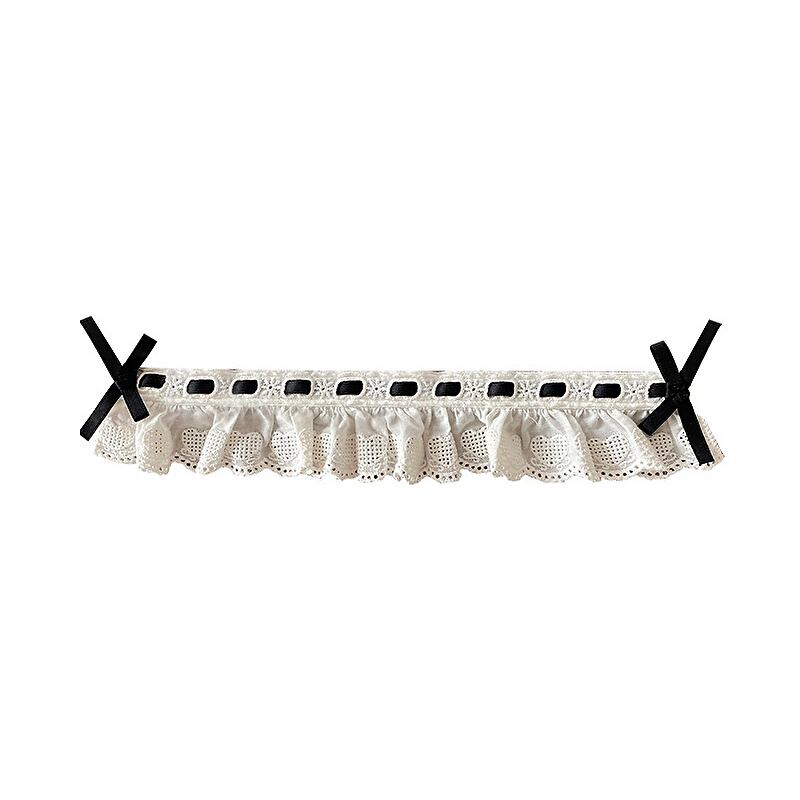 お揃いのヘアバンド: 黒の細リボンを通した梯子レースが愛らしい、フリルたっぷりのヘッドドレスがセットになっています。