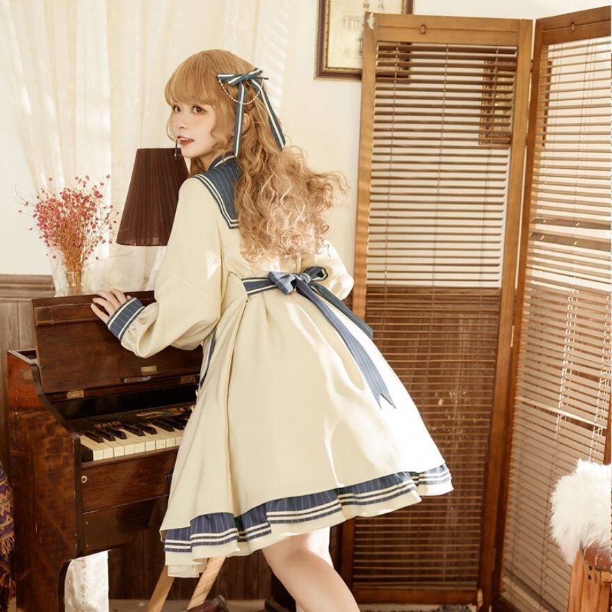 憧れのセーラーロリィタを日常に。清楚で上品なストライプ柄ティアードワンピース|Alicestyle