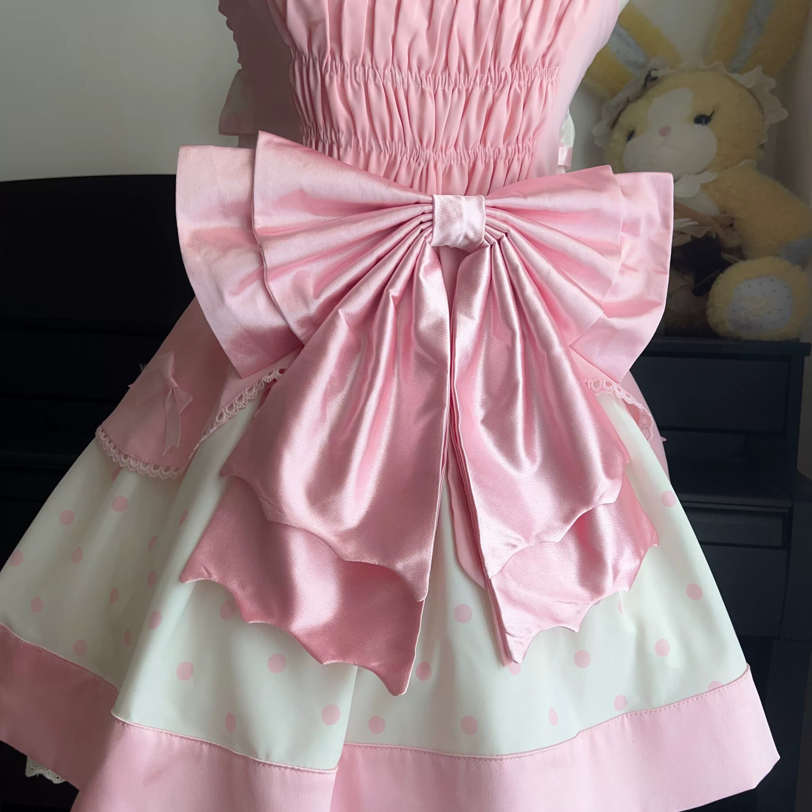 バックリボンはコーデに慣れてから…と思いがちですが、このリボンはシンプルな構造なので、ウエストに付けるだけで背面のシルエットがきれいにまとまります。写真や撮影の多い場面では特に、後ろからの見え方が全体の完成度に直結するのでおすすめです。