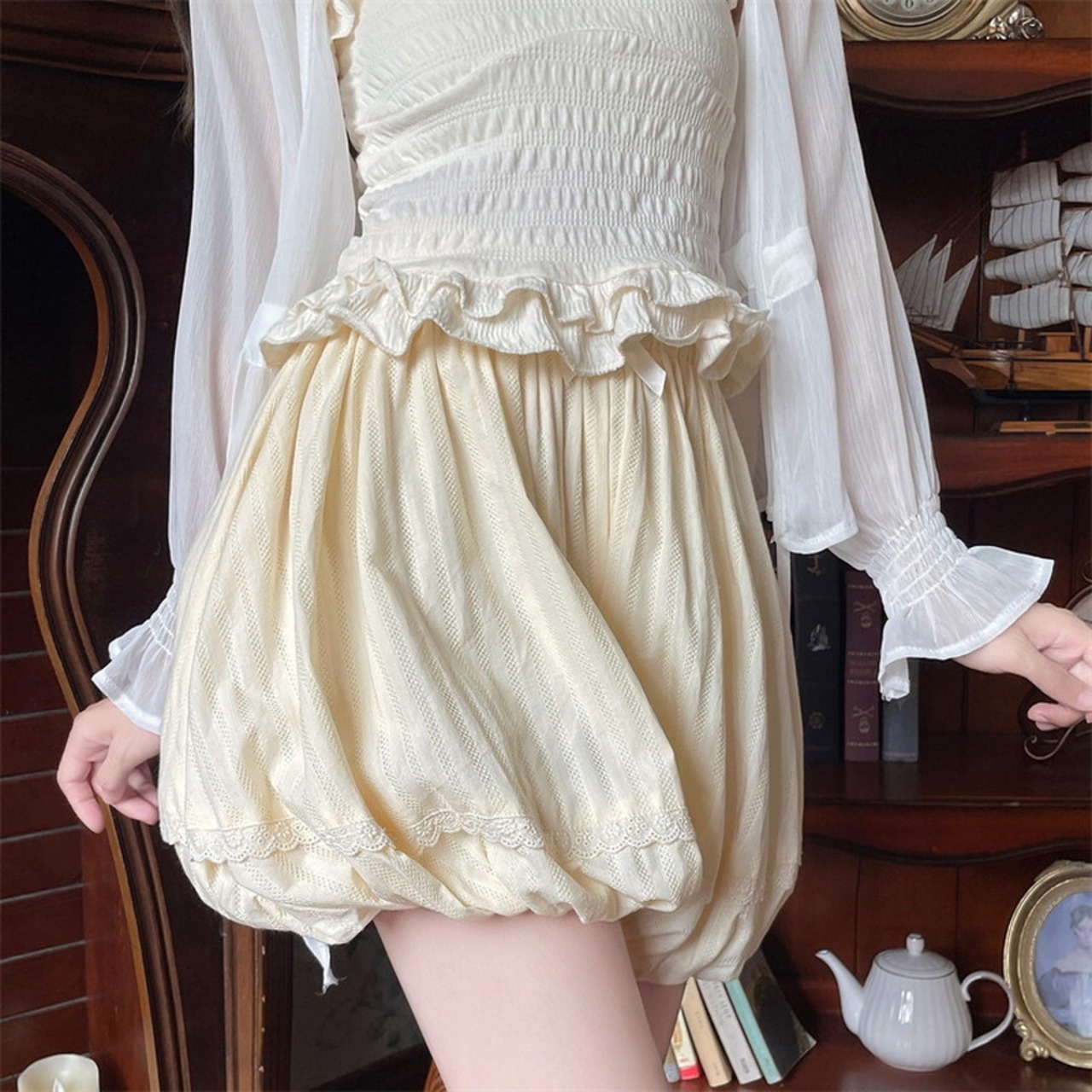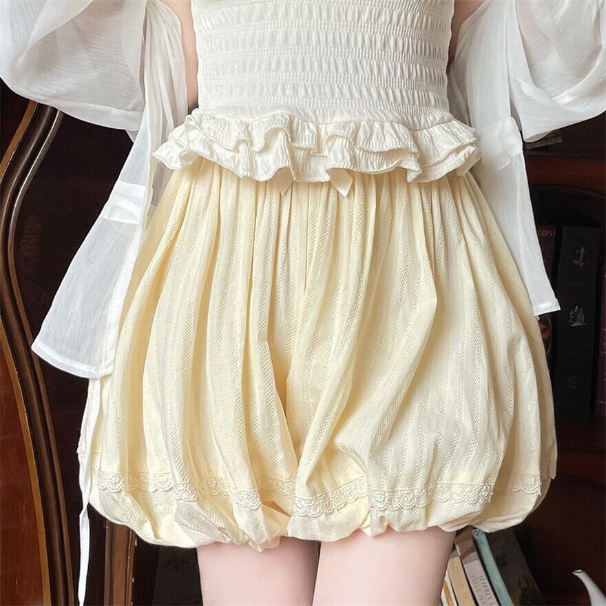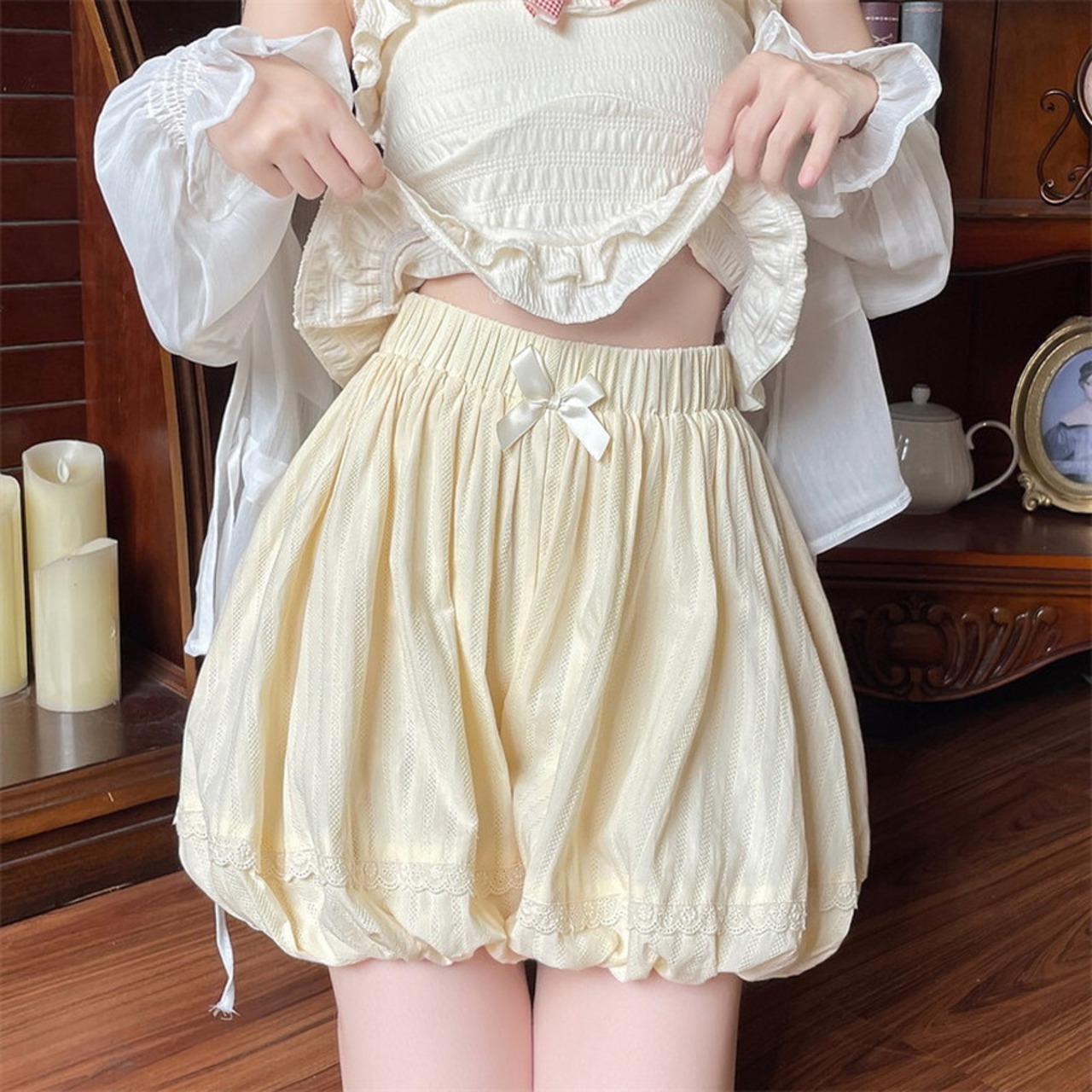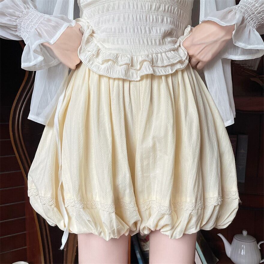 ロリィタコーデの足元をふんわりと締めくくる、クリームカラーのかぼちゃパンツです。
