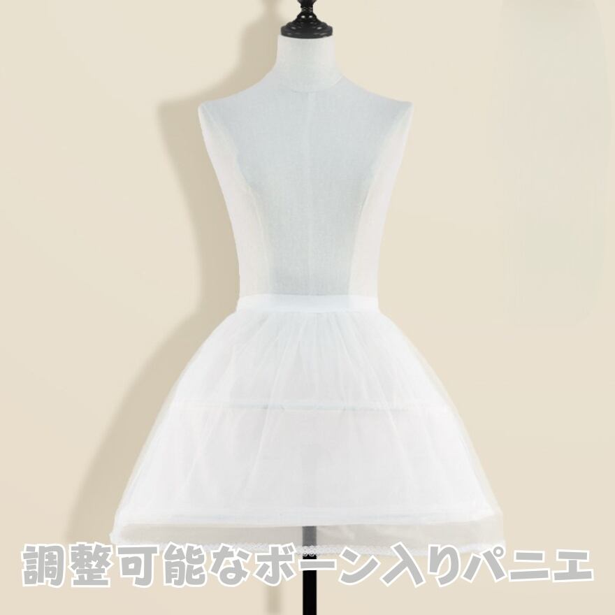 ワイヤーパニエ:ボーン入りフープ構造、ボリューム調節可能(40cm・45cm)ふんわりスカートラインを強調したい時に着用します。