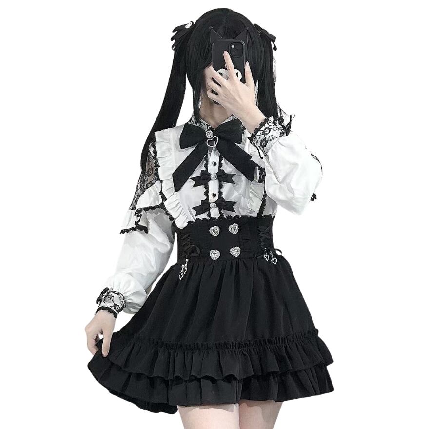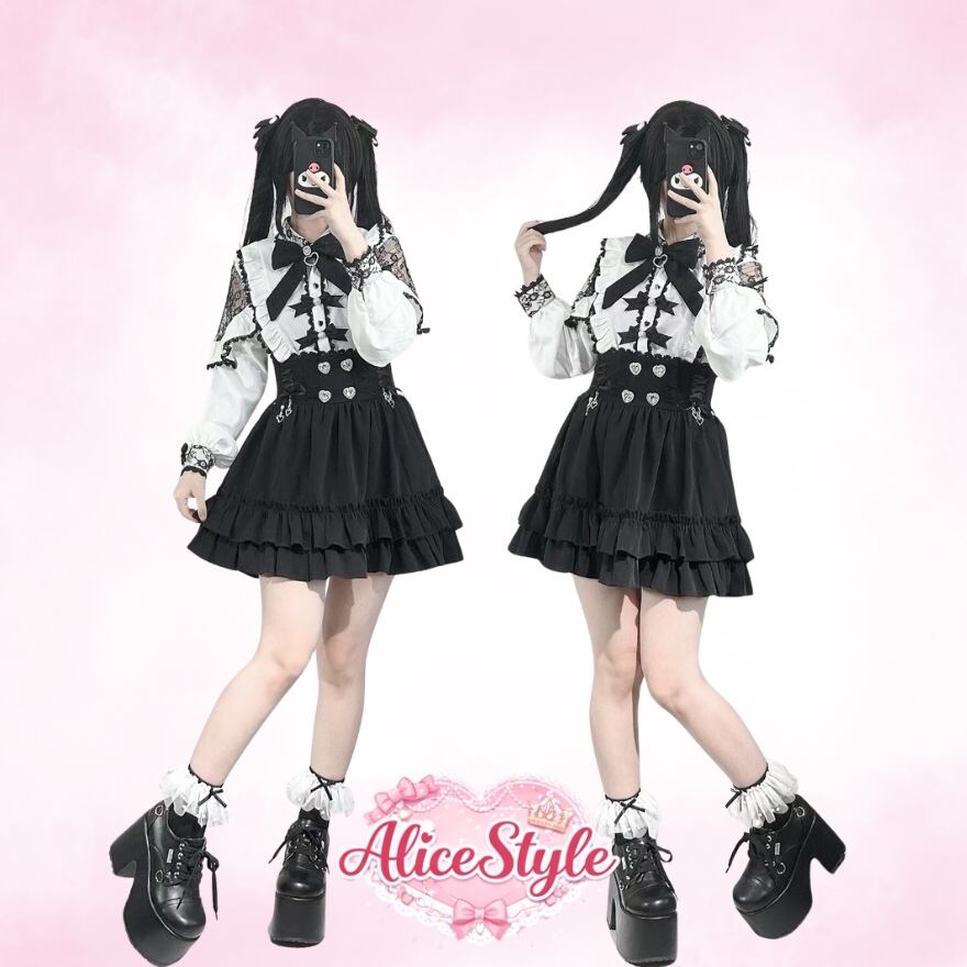 ゴシックロリータ|ハートビジューコルセットウエストフリルスカート(ブラック)夜の美意識を纏う日に|Alicestyle