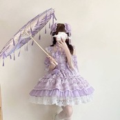 甘ロリ入門に適した、レースとフリルを重ねたワンピースです。淡いパープル系にピンク、ミントグリーンの3カラー展開。