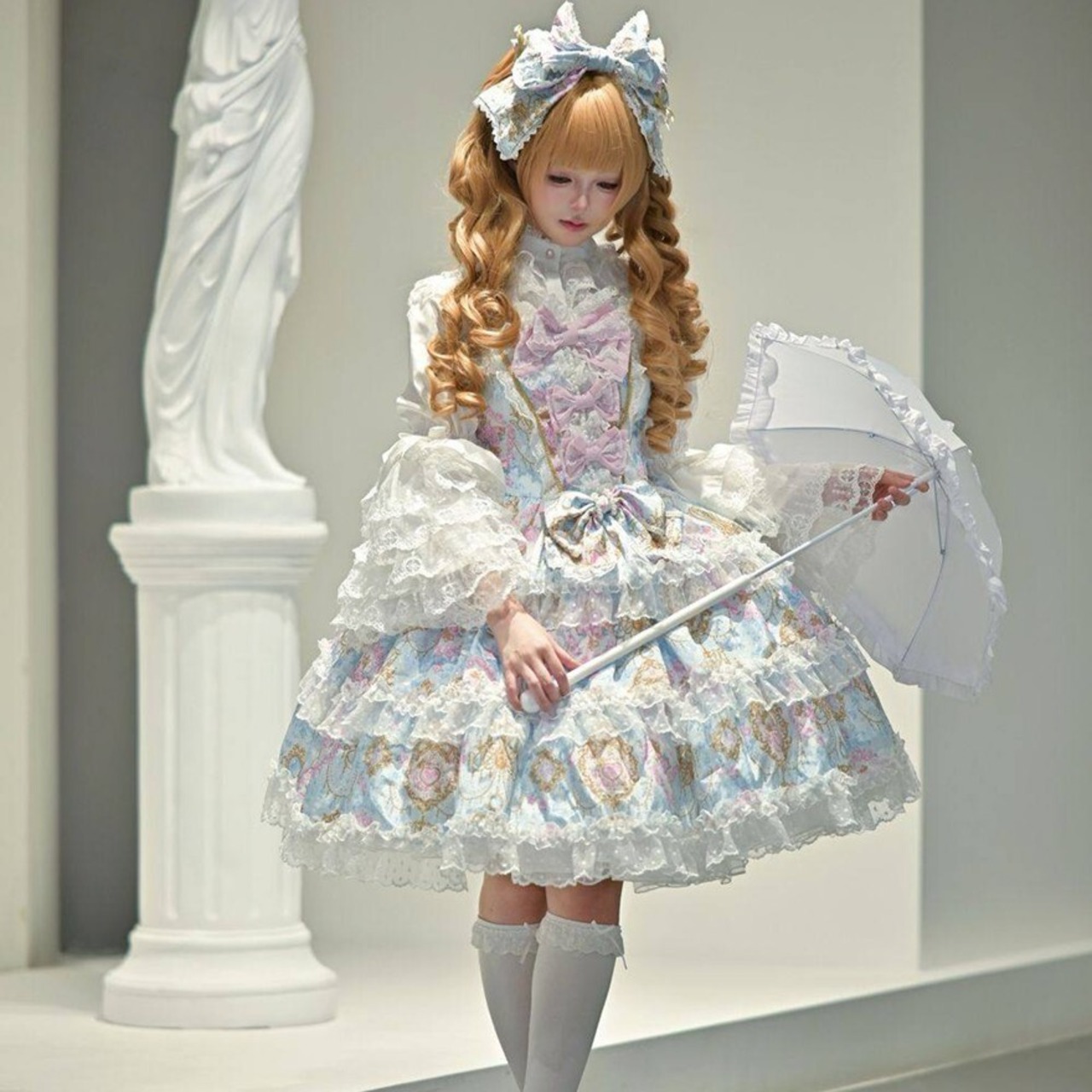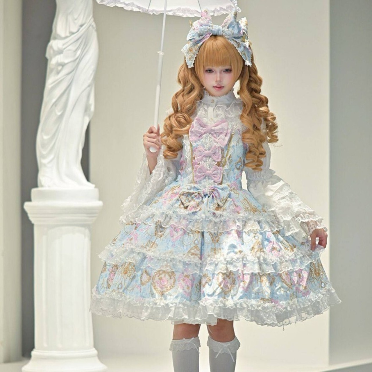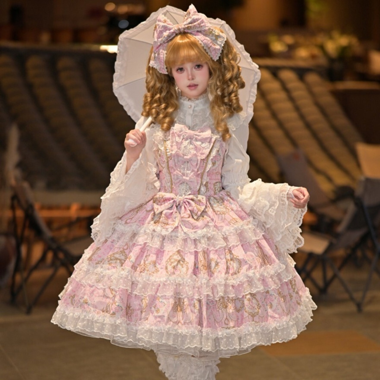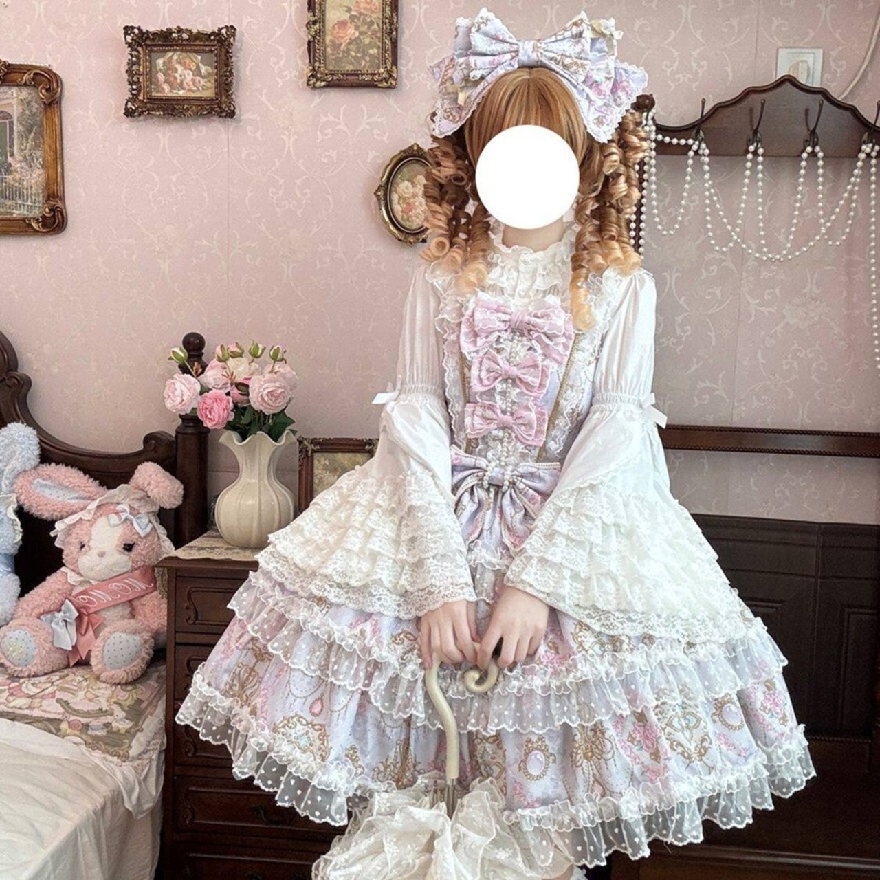 ・お茶会やロリィタイベントに。360度どこから見ても華やかなフリルが、特別な社交の場にふさわしい存在感を放ちます。 ・セルフ撮影や推し活に。繊細なプリントと多重フリルの重なりは、カメラ越しでもはっきりとその美しさが伝わります。