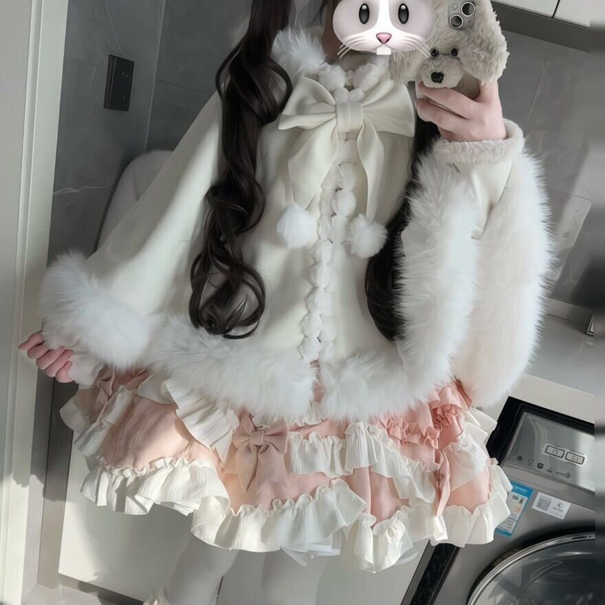 甘ロリ・姫ロリ系ファーケープ(マント)