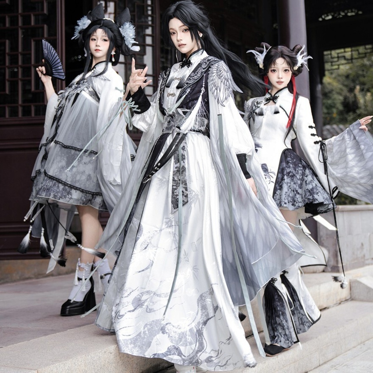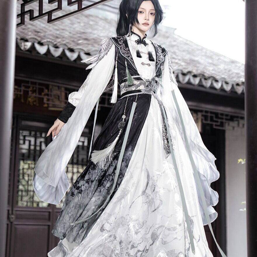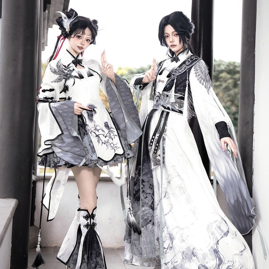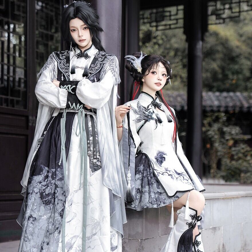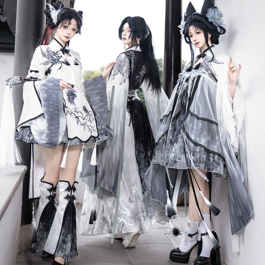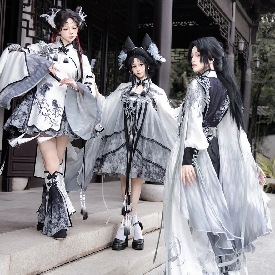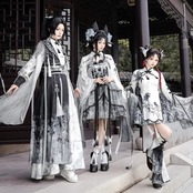墨を流したような濃淡の中に、静けさと凛々しさが共存する中華ロリータの世界観です。古い回廊を歩くたびに袖が揺れ、物語の主人公のような余韻を残してくれます。