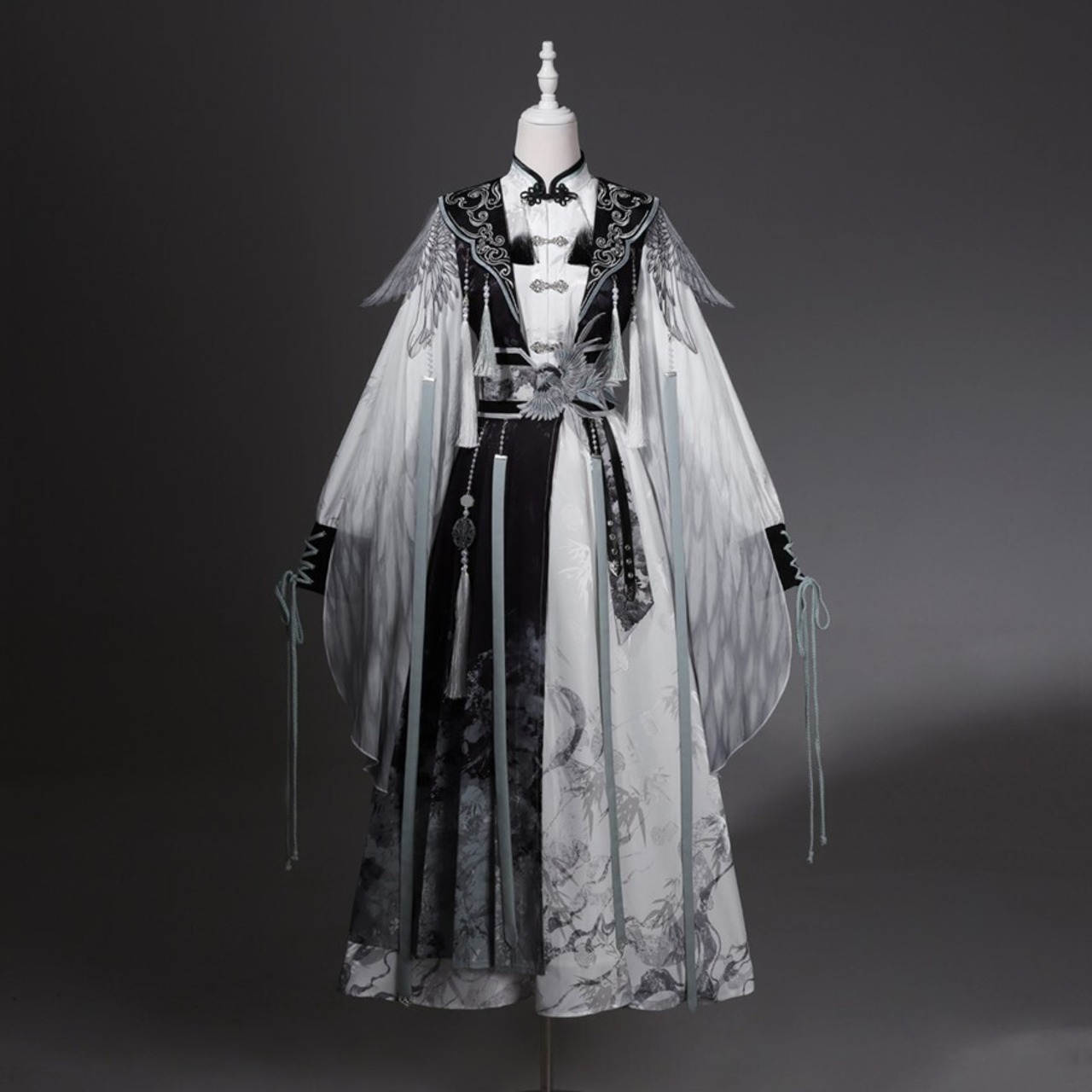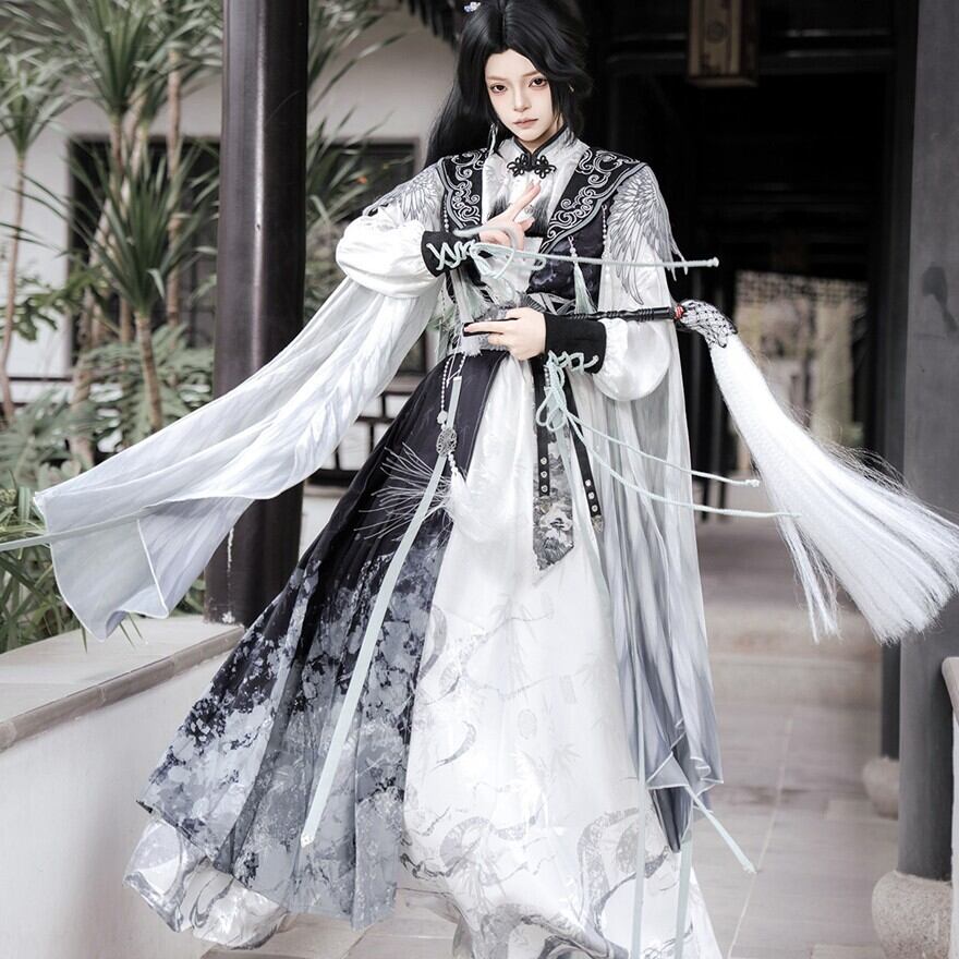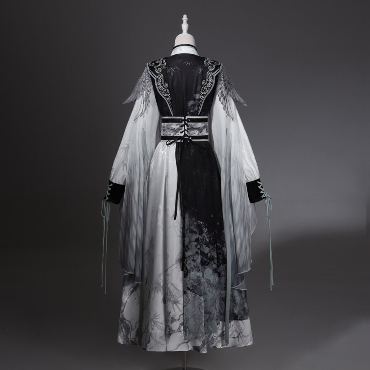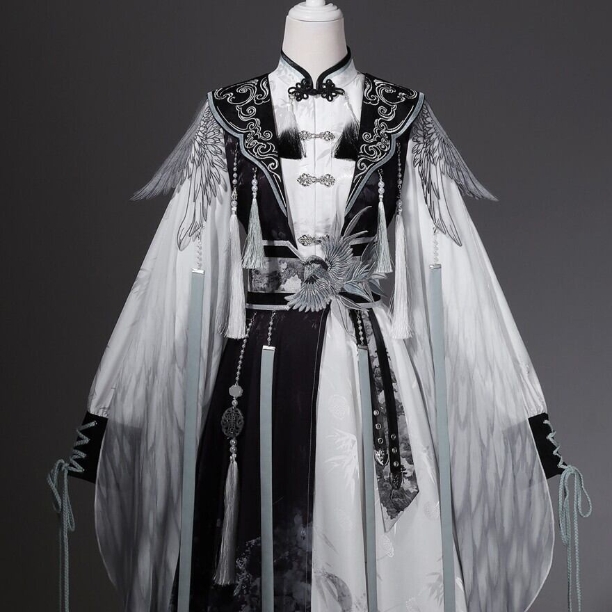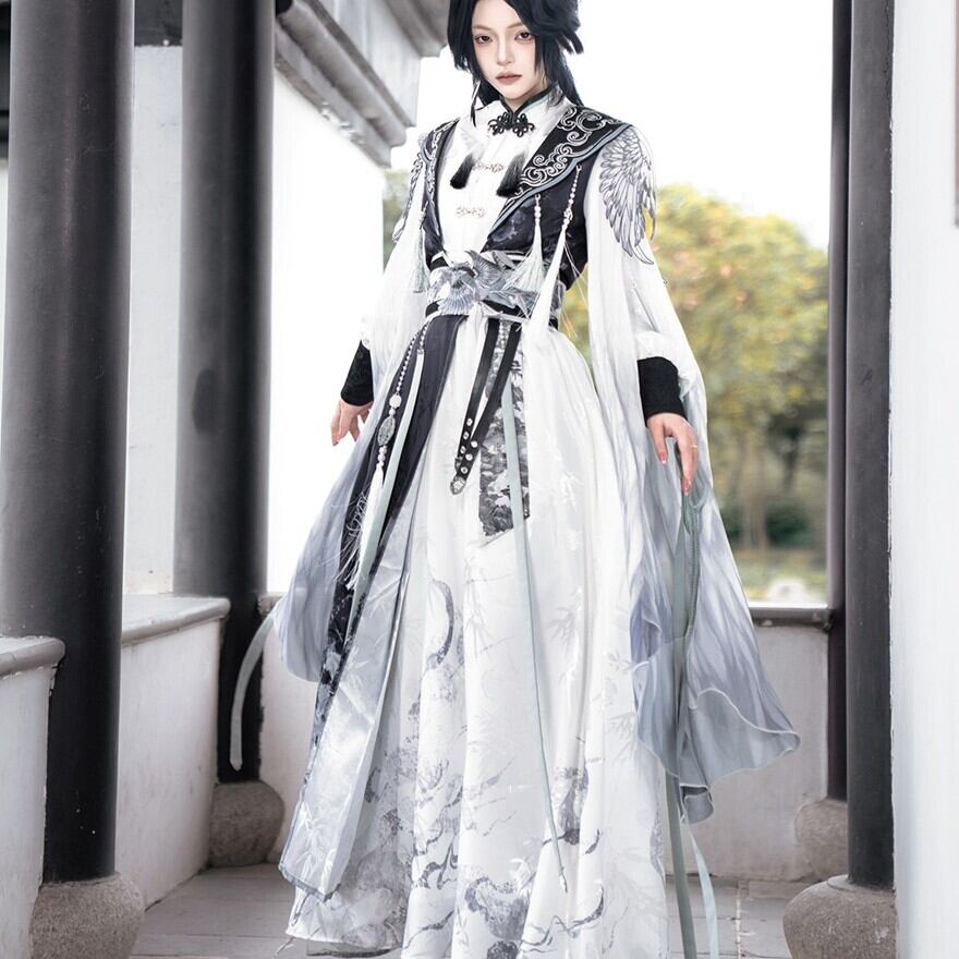 墨を流したような濃淡の中に、静けさと凛々しさが共存する中華ロリータの世界観です。古い回廊を歩くたびに袖が揺れ、物語の主人公のような余韻を残してくれます。
