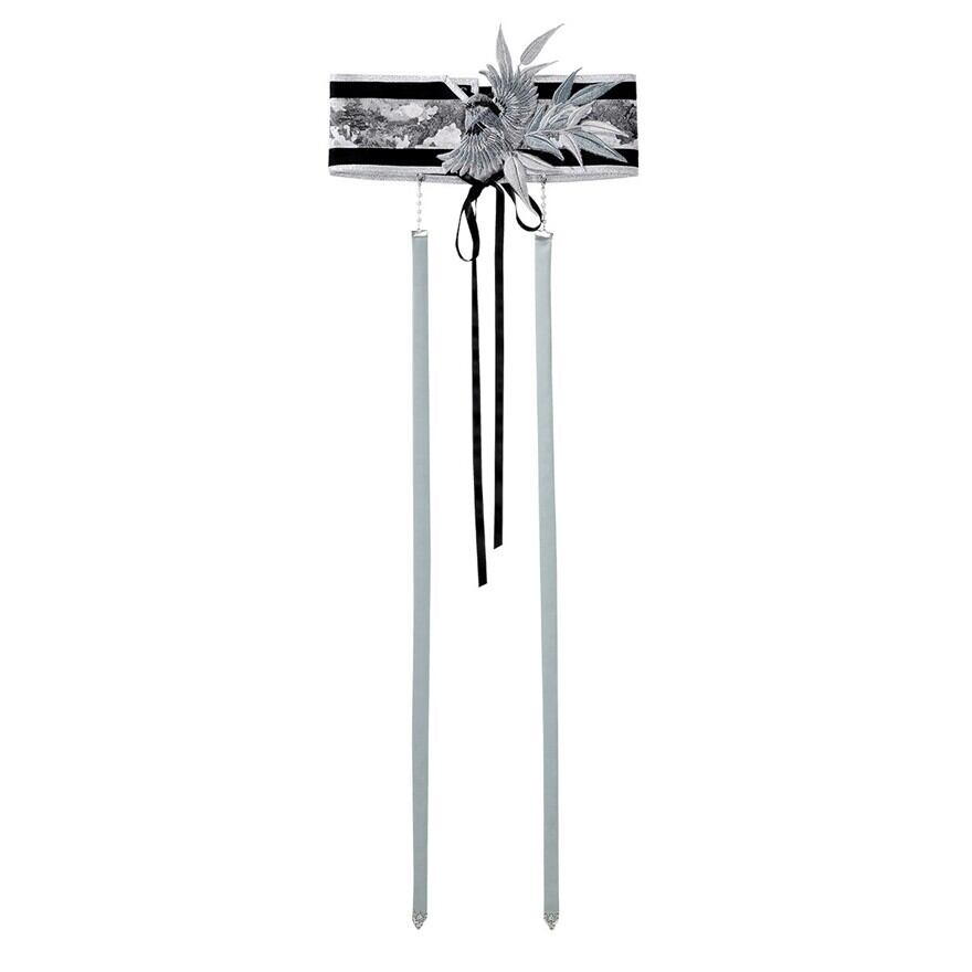 ホワイト、ブラック、グレーを重ねた水墨画のような配色が印象的なロングセットアップです。長く流れる袖と裾の動きが美しく、立っているだけでも絵になる存在感がありながら、色数を抑えているぶん品よくまとまるのが魅力。華やかさは欲しいけれど強すぎる色は避けたい、そんな方にも取り入れやすい静かな迫力を持った一着です。
