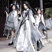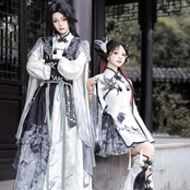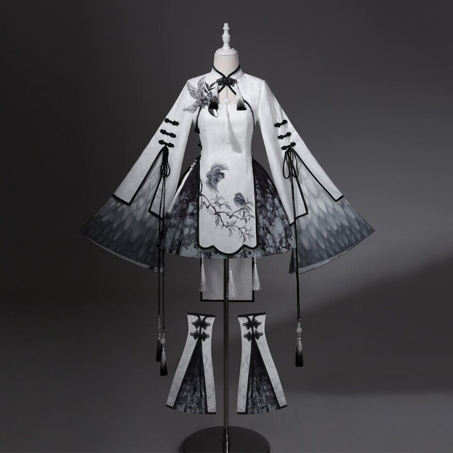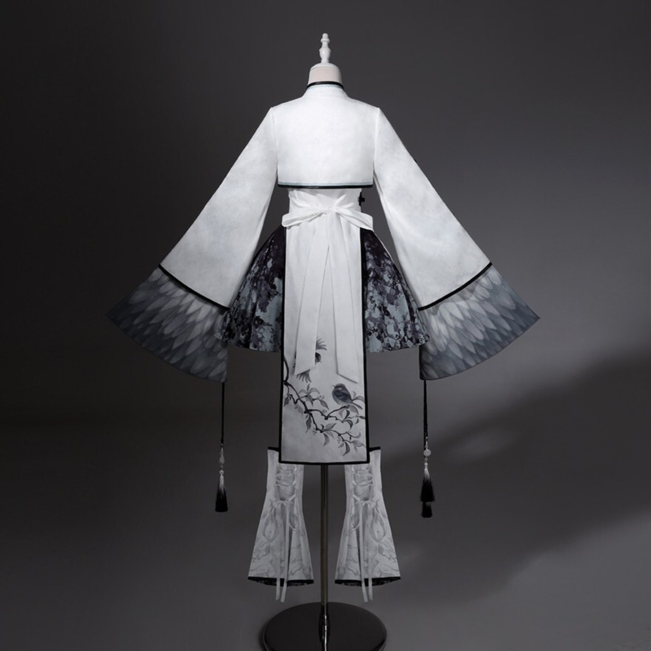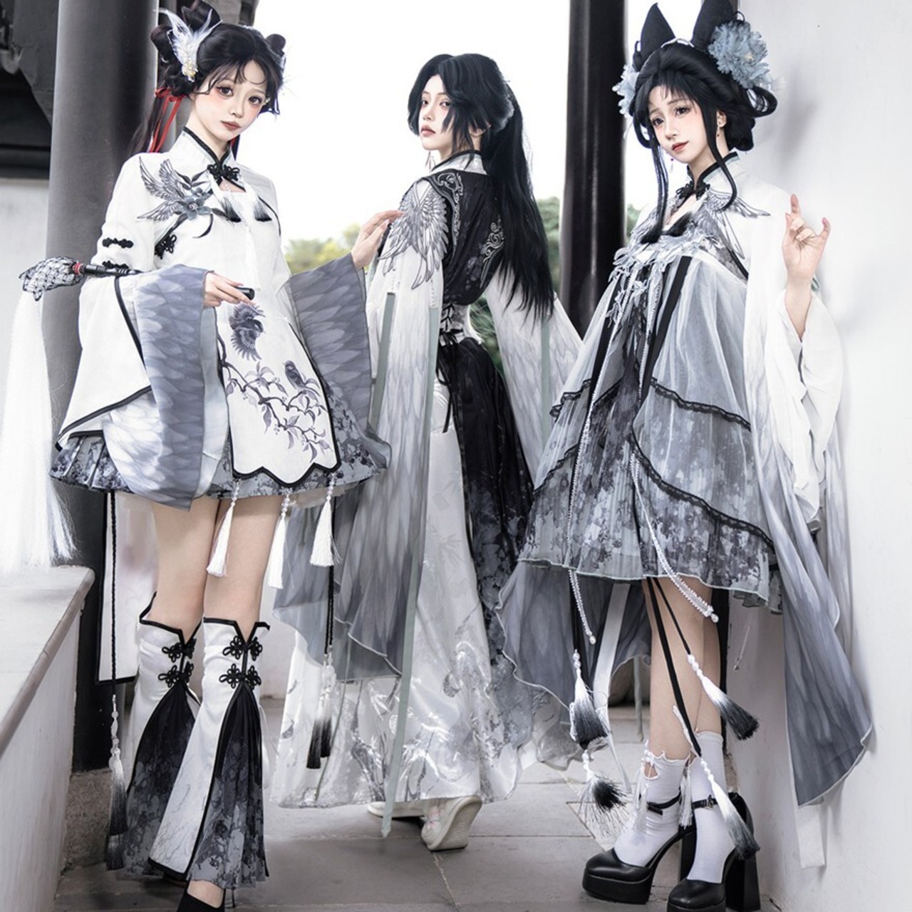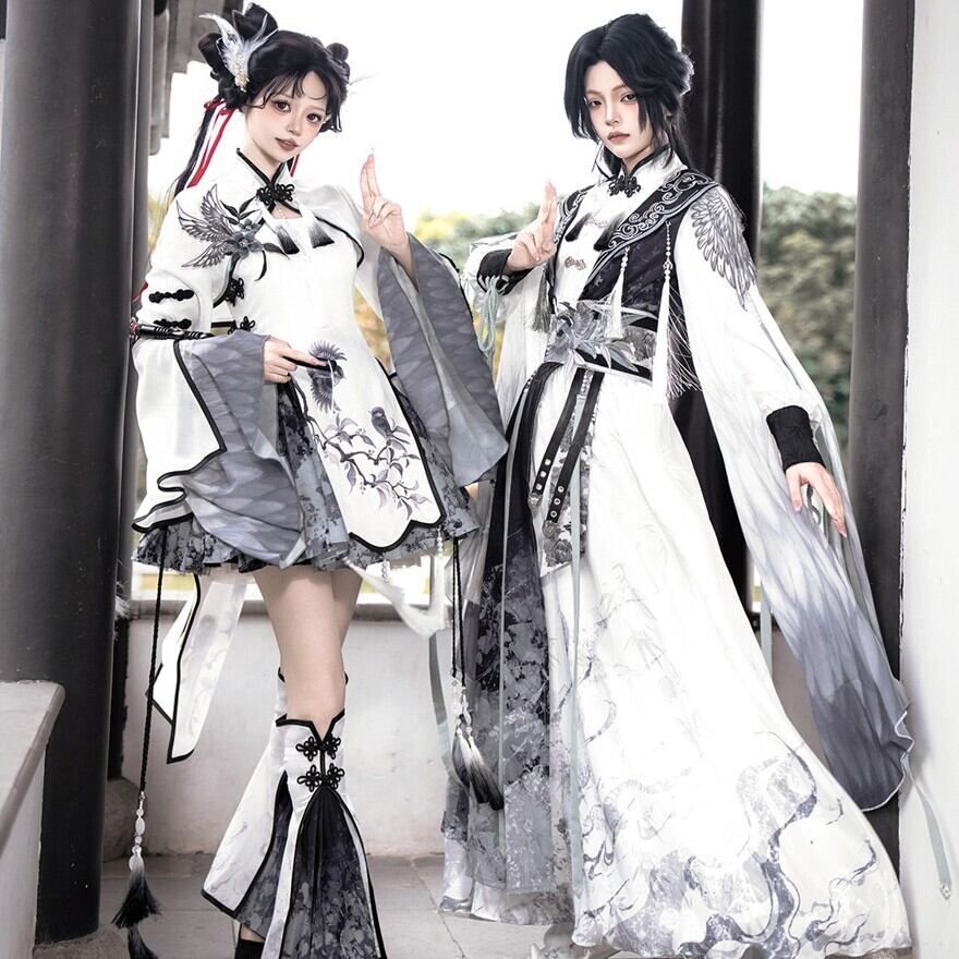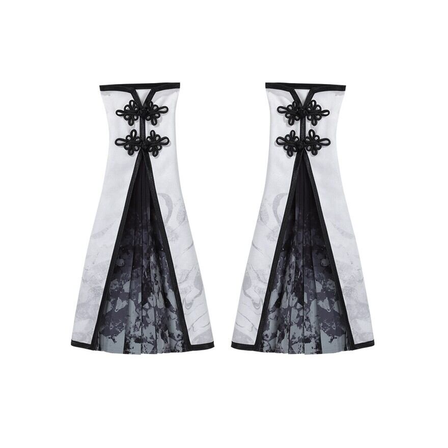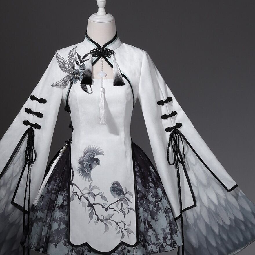 筆で描いた花影をまとって歩くような、軽やかで少し幻想的な世界観です。白を中心にした透明感のある配色が、和の気配と中華の装飾美をやわらかくつないでくれます。