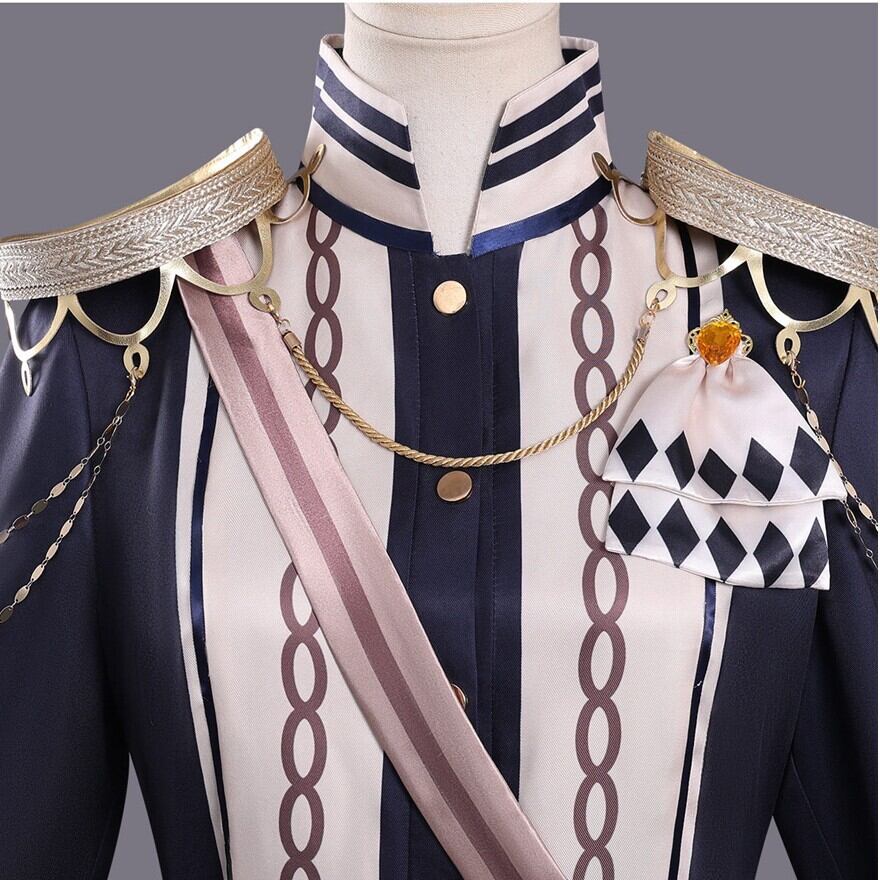 若き指揮官が物語の中心に立つような、端正で華やかな王子系の世界観です。ネイビーの静かな強さに金飾りを重ねることで、気品のあるミリタリースタイルが完成します。