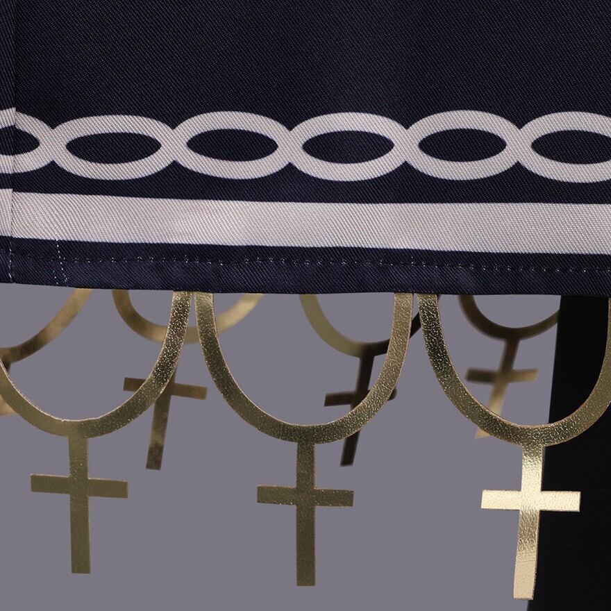 装飾は多めですが、配色がネイビー、白、ゴールドでまとまっているため全体の印象が崩れにくいデザインです。セット感が強く、王子系のバランスを一から考えなくても雰囲気を作りやすい一着です。