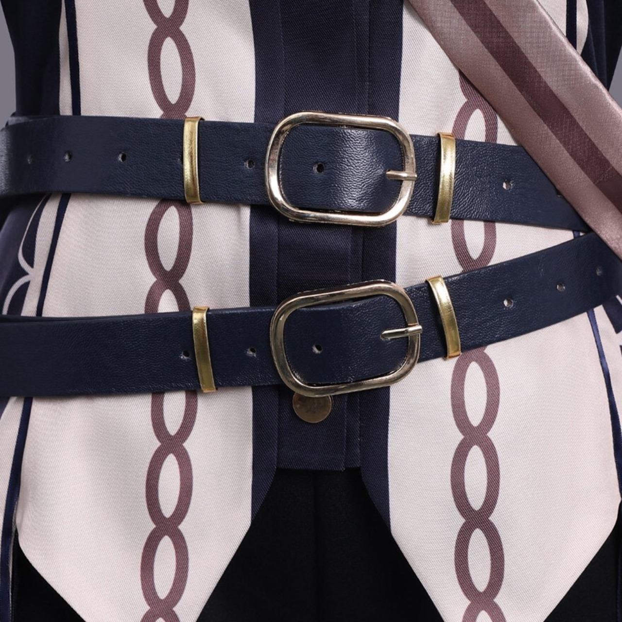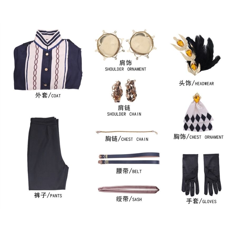 セット構成:ロングコート、パンツ、装飾小物を重ねた、舞台映えするフルセット衣装