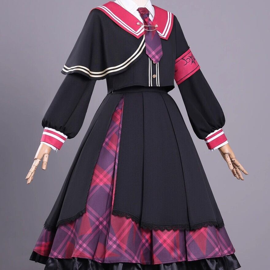 秘密の学園に通う少女の制服のような、少し危うくて印象に残る世界観です。黒に赤チェックを差し込むことで、可愛さの中にひそかな強さが宿ります。