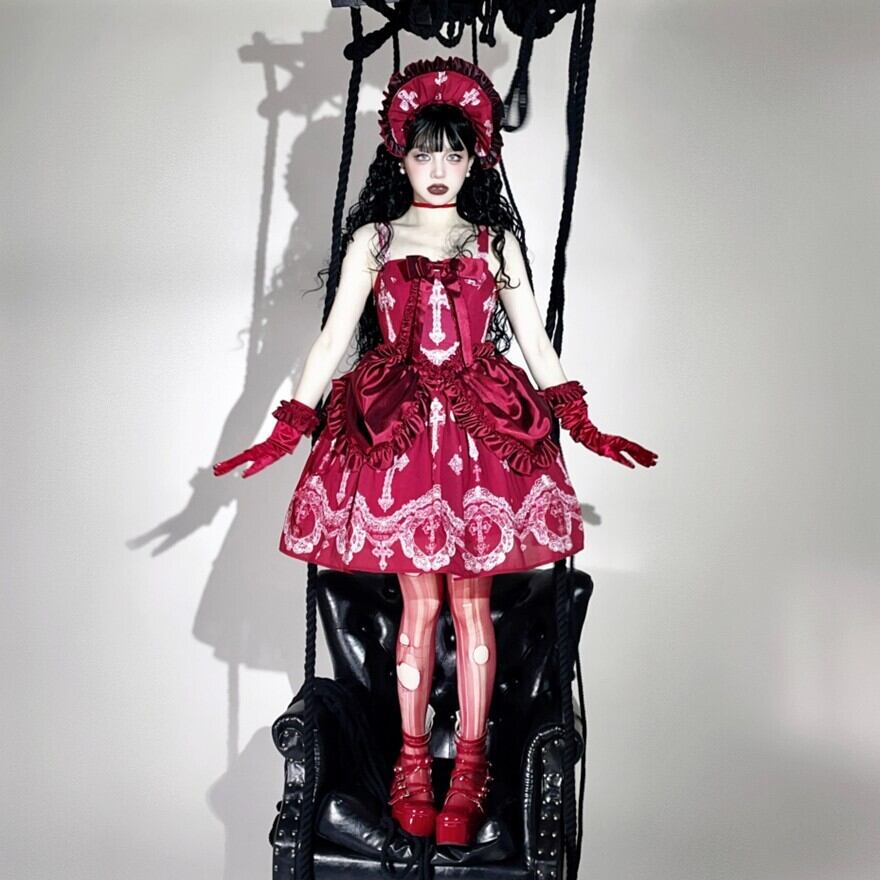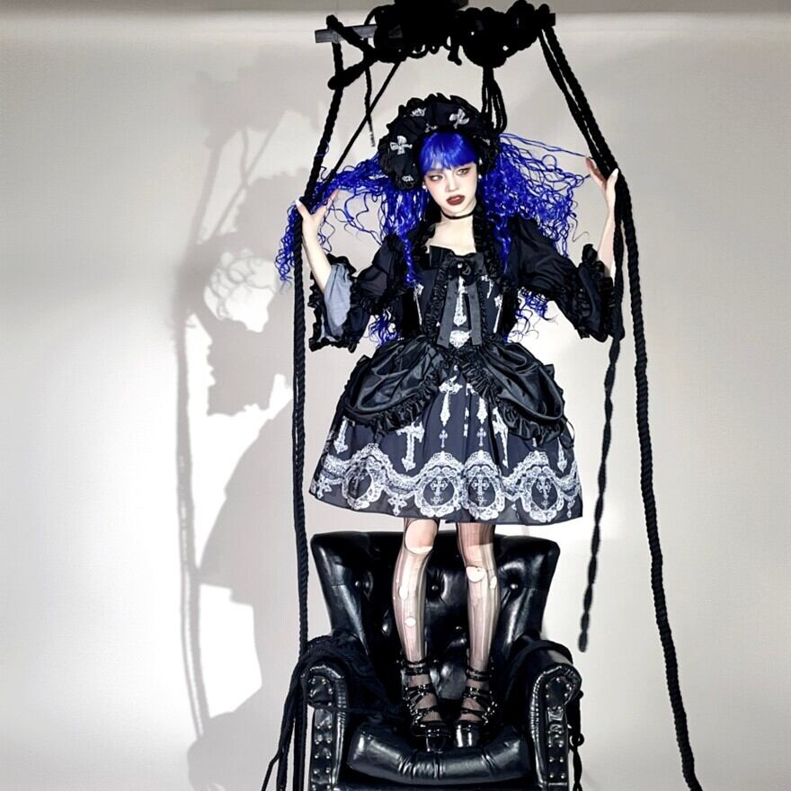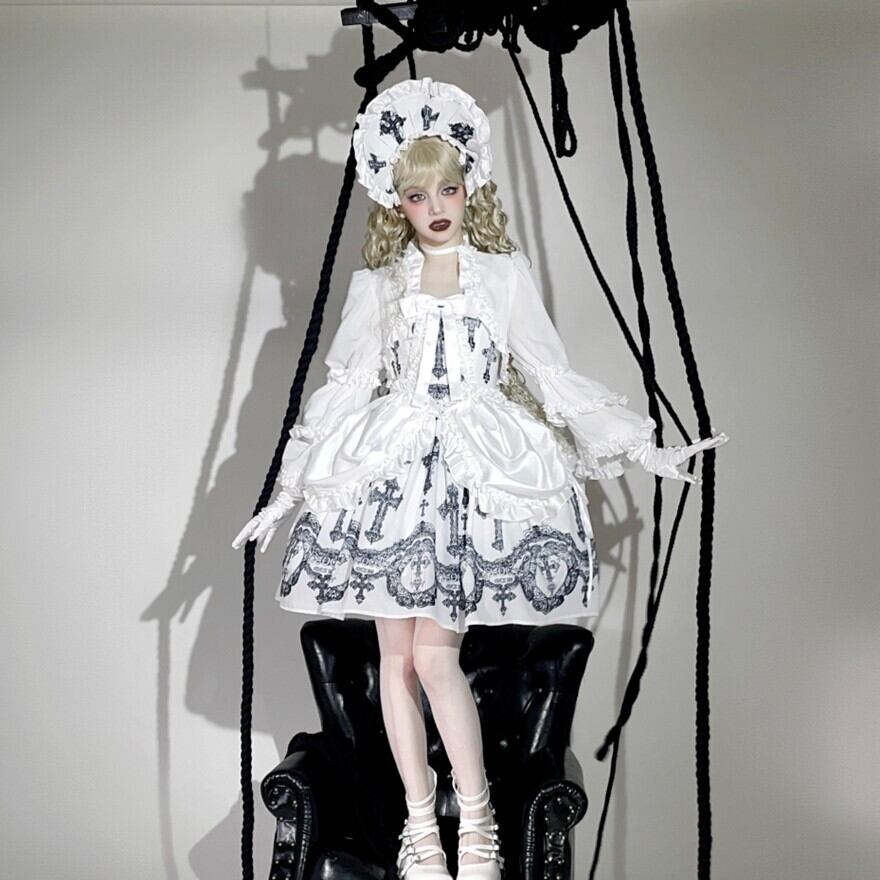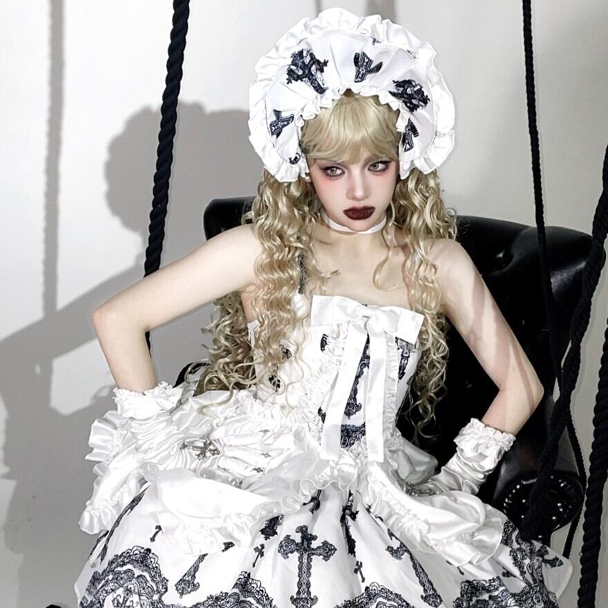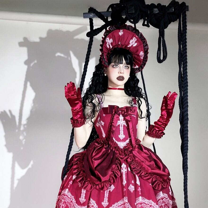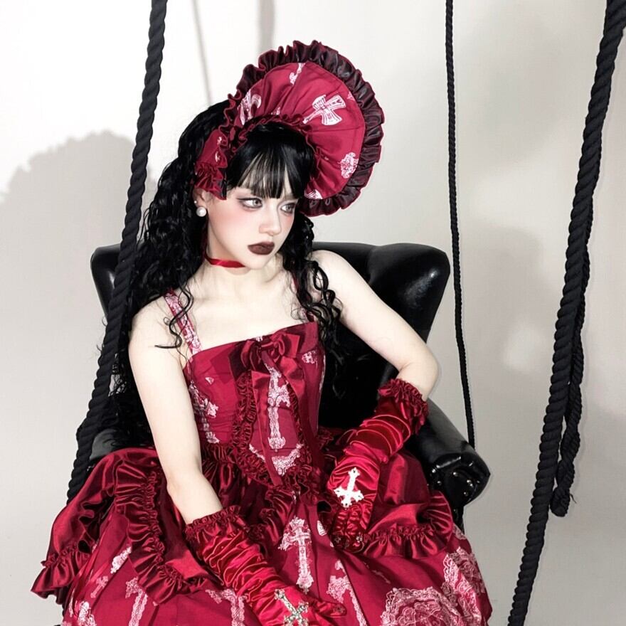 【予約生産品】ゴシックロリータ|十字架刺繍フリルボンネット(3色)顔まわりを主役に|Alicestyle