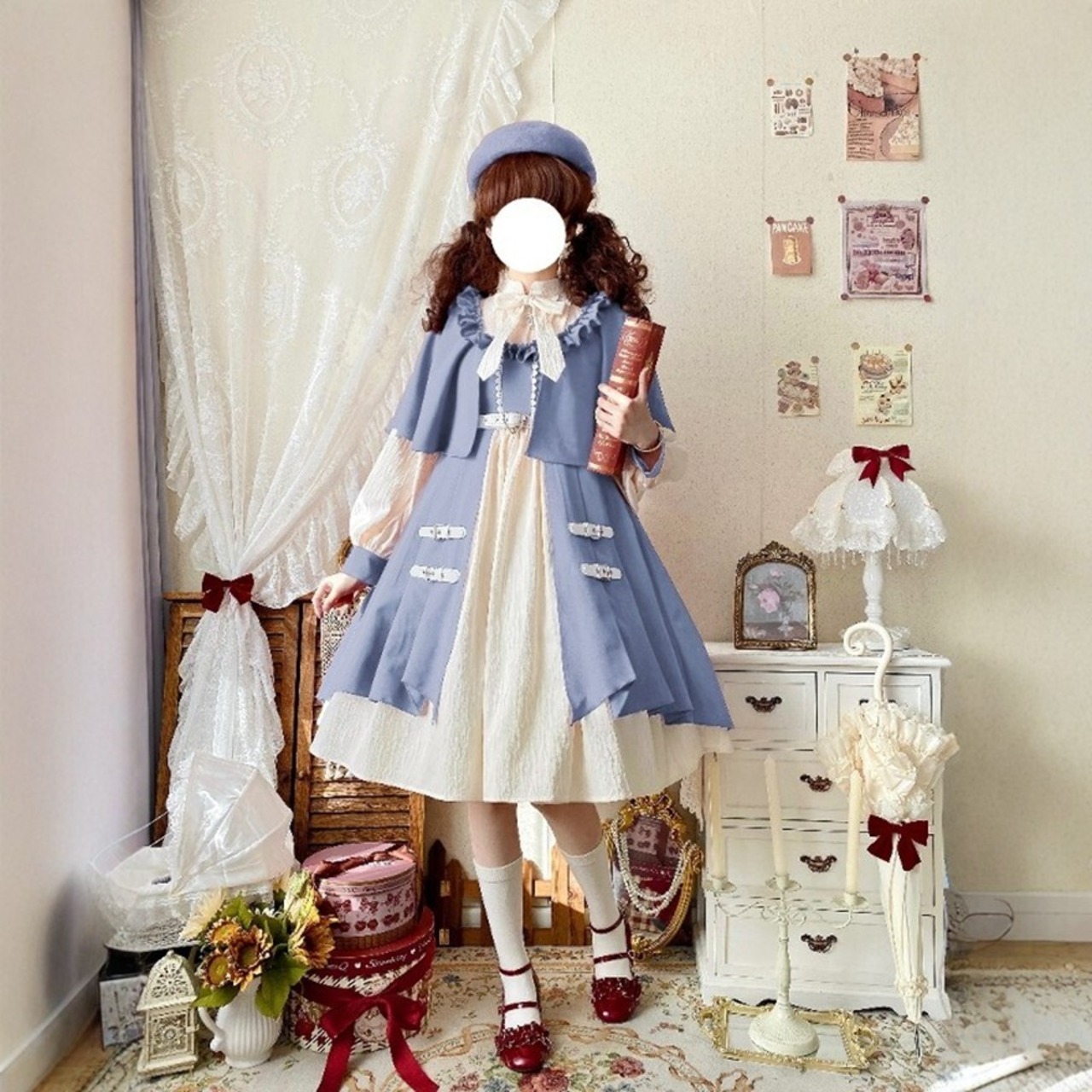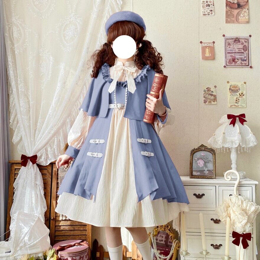 クラシカルロリィタ ワンピース(ケープ付き・フェイクツーピース)