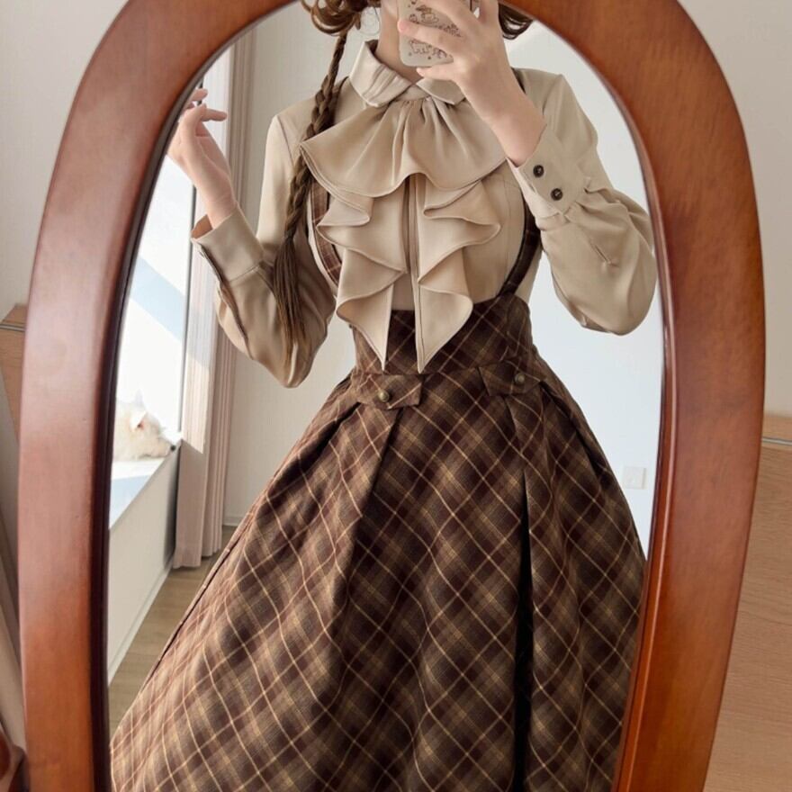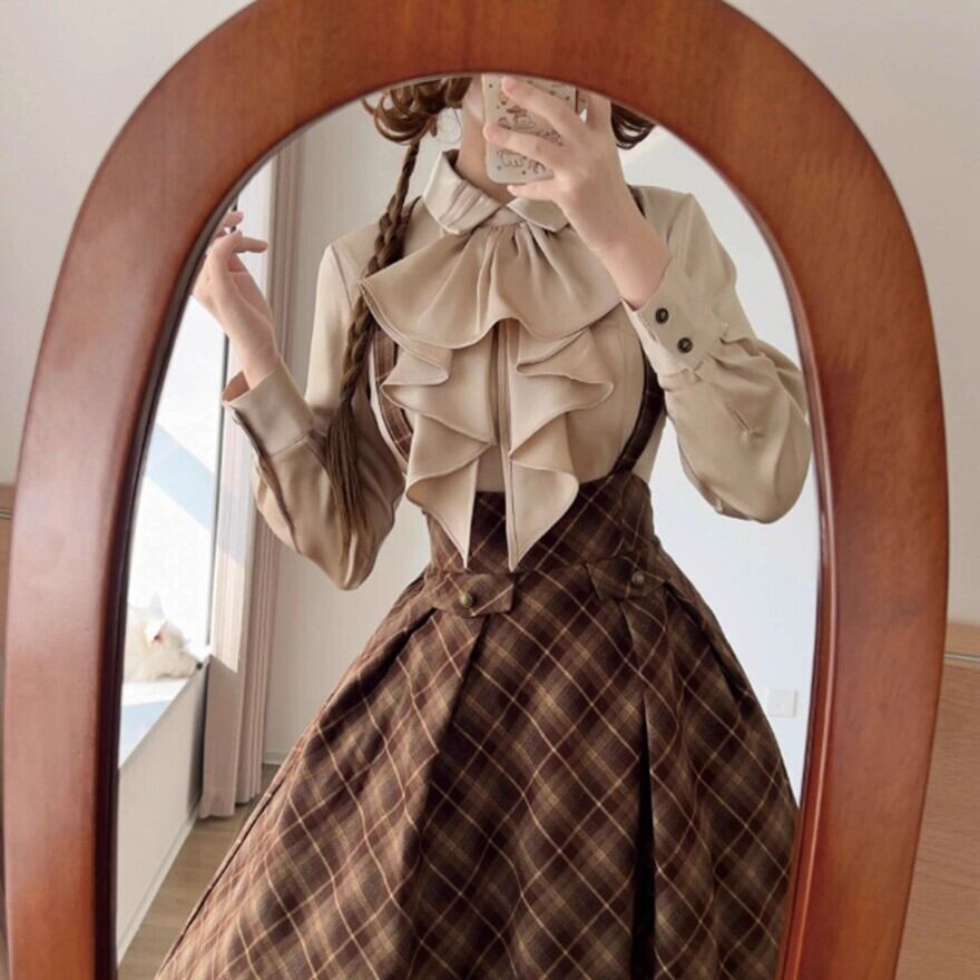 胸元にカスケードフリルを重ねた、クラシカルロリータらしい端正なブラウスです。甘すぎないのに華やかで、ジャケットの下に着ても存在感が残るバランス。ジャンスカやスカートを変えるだけで印象が動くので、コーデの軸になる一枚です。