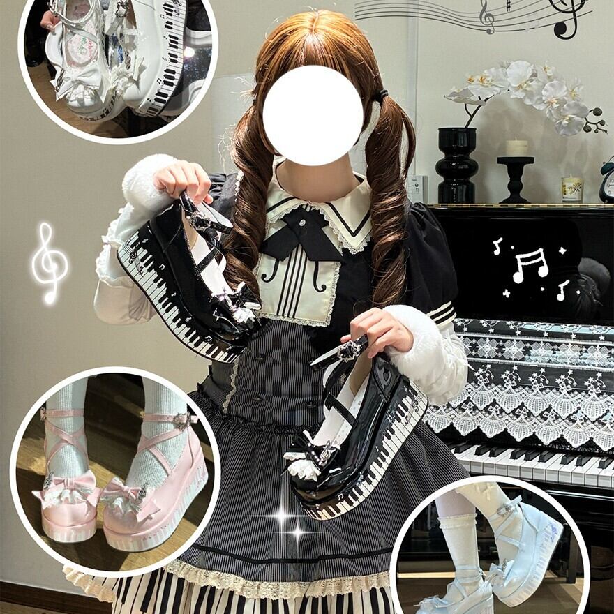 ロリィタファッション|ピアノ鍵盤厚底シューズ きらめく足元で推し活したい日に|Alicestyle