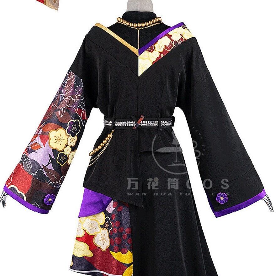 黒を基調に、赤や紫の和柄を大胆に差し込んだ、凛とした華やかさが目を引く王子系ロリータのセットアップです。ゆるやかな和の空気をまといながら、帯ベルトや下がり飾りが全体を引き締め、格好よさと艶やかさを一度に楽しめます。特別な日の装いに印象を残したい時にもぴったりな一着です。