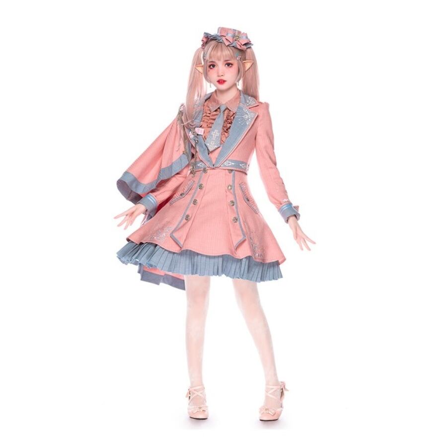 軍服ロリータ|ケープ風デザインセットアップ くすみピンクの気品を纏って|Alicestyle
