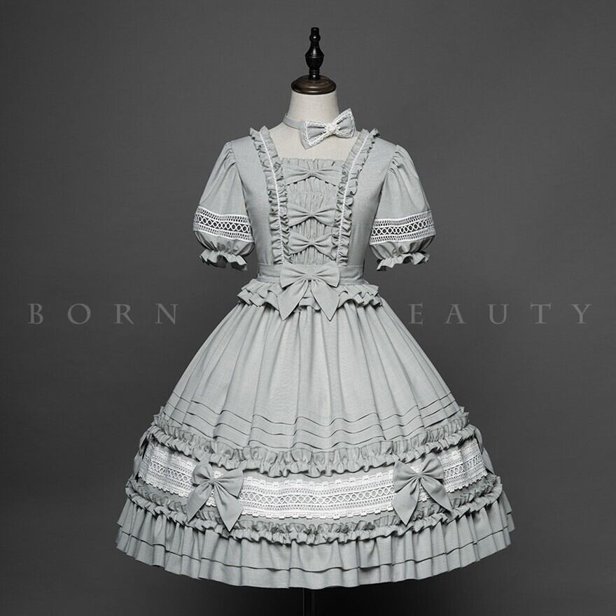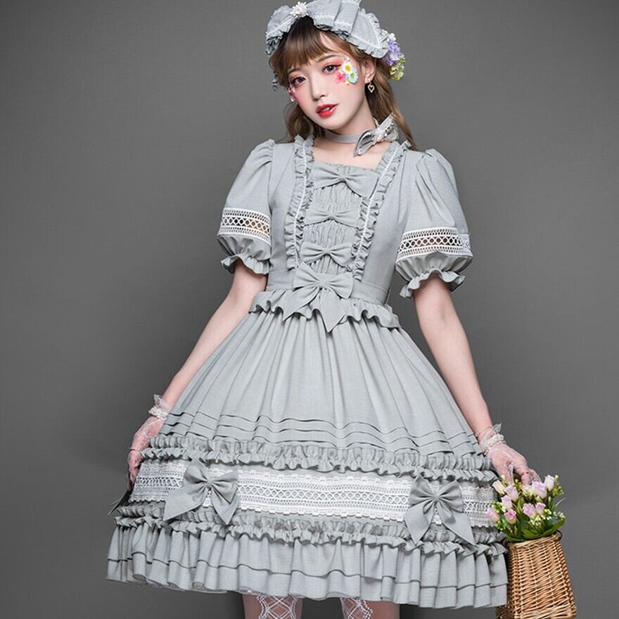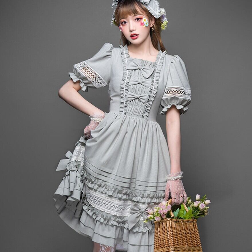 クラシカル要素を備えた半袖ロリィタワンピース(リボン・レース・編み上げ仕様)|Alicestyle