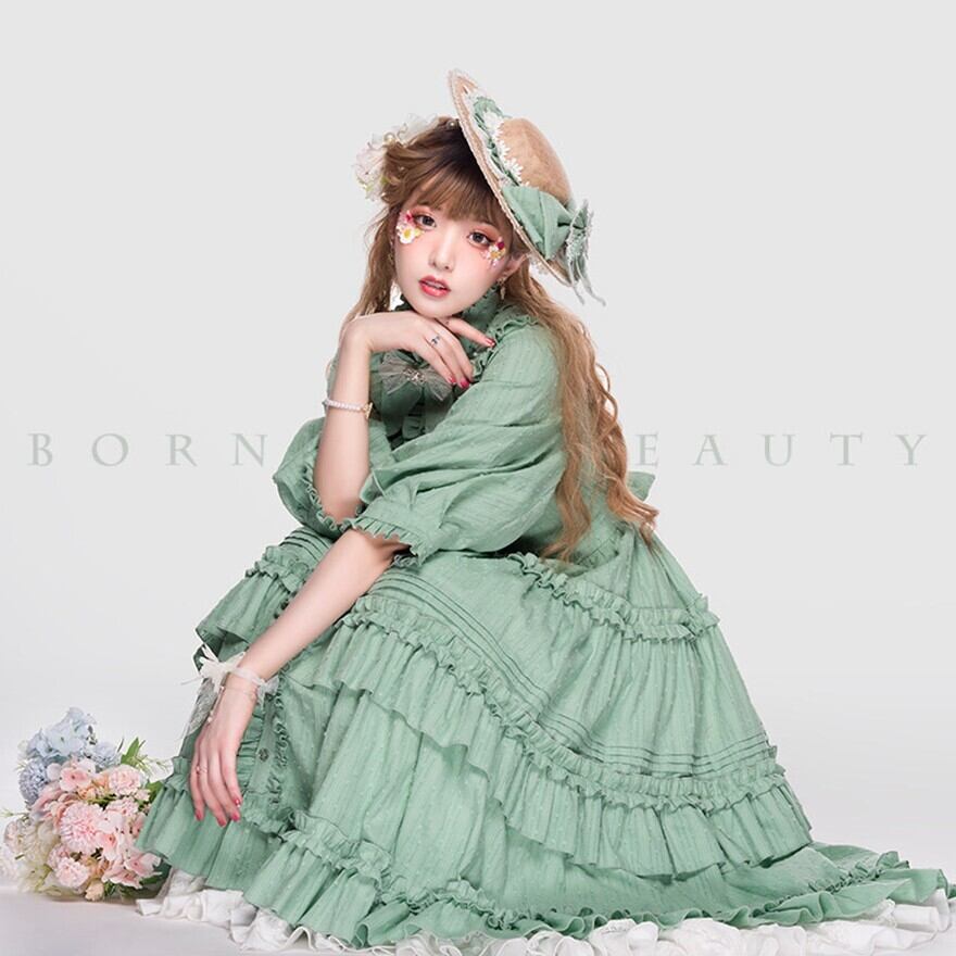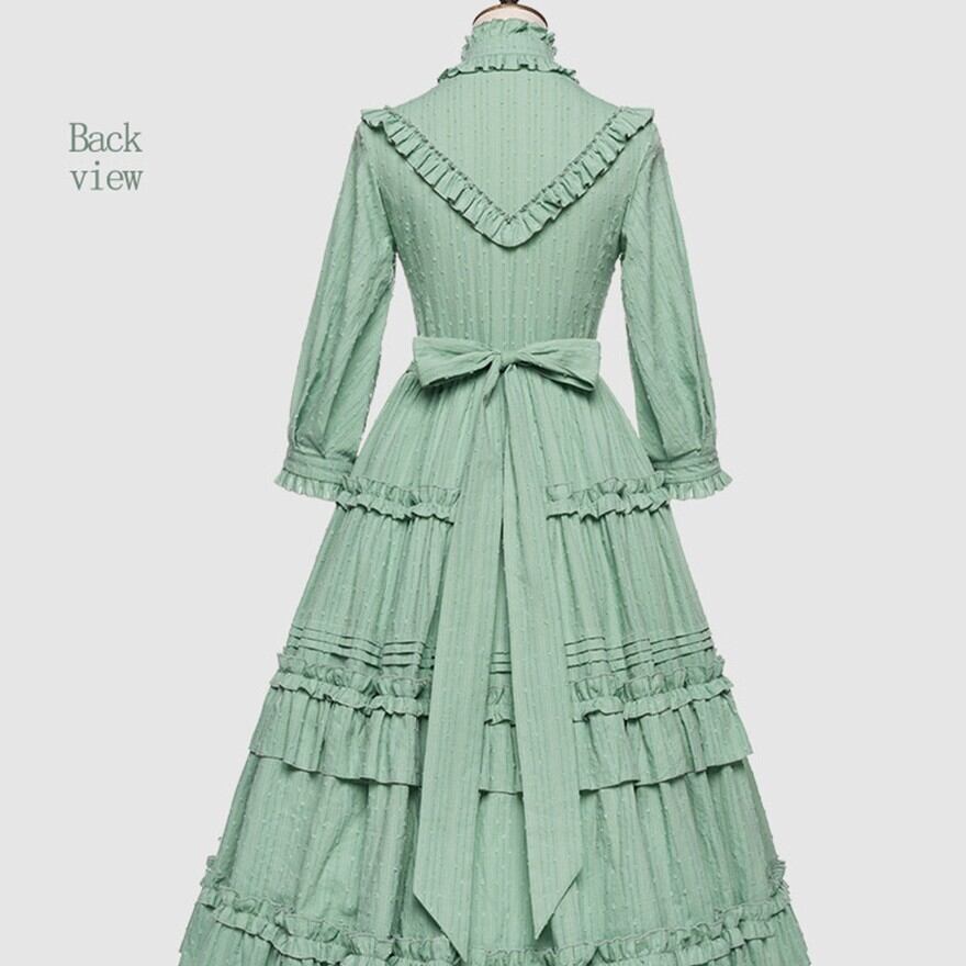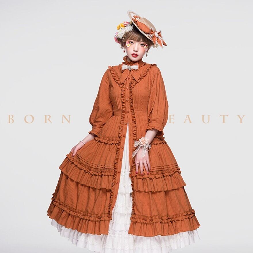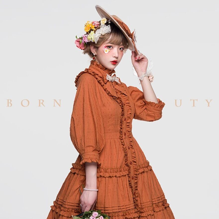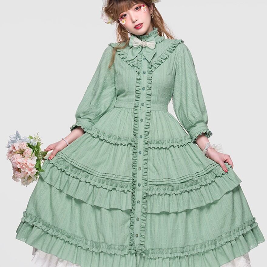 整ったフリルの重なりと、きちんと感のあるフロントデザインが魅力の、上品でクラシカルなお嬢様スタイルです。甘さを強く押し出しすぎず、落ち着いた華やかさで魅せるデザインなので、アンティークな空間や洋館、お茶会のような特別なシーンにも自然になじみます。Alicestyleらしい、はじめての方にも寄り添いやすいクラシカルロリータの世界観を楽しめる一着です。