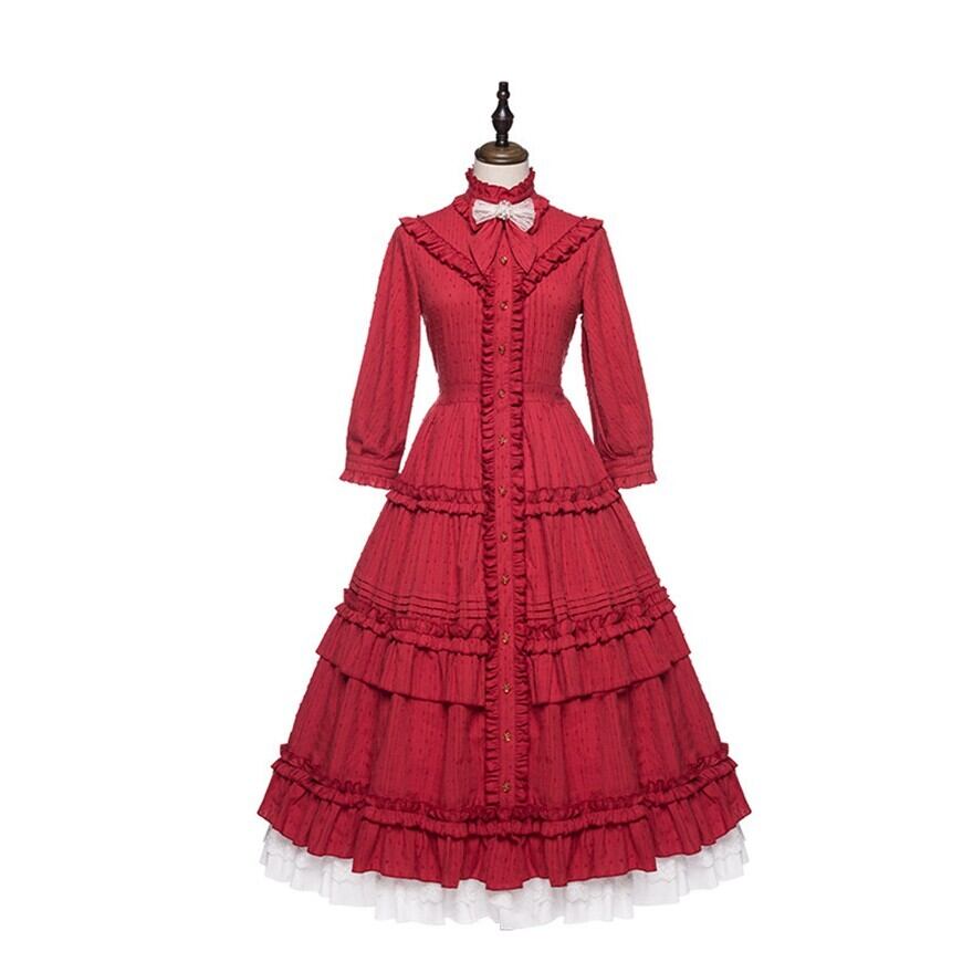 クラロリに興味はあるけれど、「難しそう」「普段の自分に似合うか不安」と感じる方にも取り入れやすいタイプです。こちらは露出を抑えた長袖デザインで、シルエットもきれいに整いやすいため、一枚でもコーデの雰囲気を作りやすいのが魅力です。まずはレースソックスやストラップシューズなど、合わせやすい定番小物から始めると、無理なくクラシカルロリータらしい装いにまとまります。