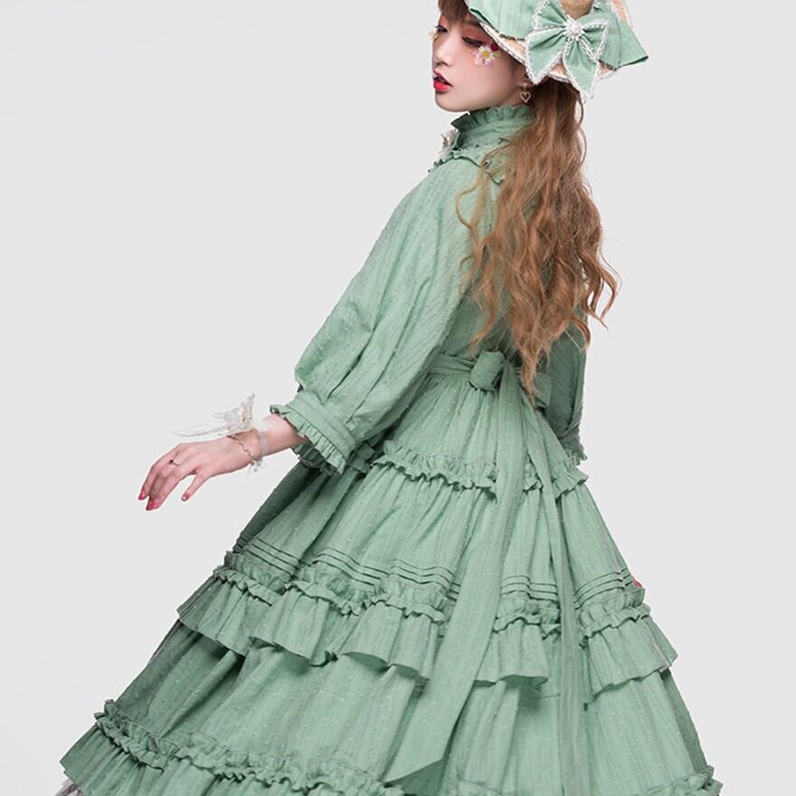 上品で落ち着いたお嬢様らしさを大切にした、クラシカルロリータの世界観を楽しめる一着です。甘さを強く押し出しすぎず、整ったフリル使いや縦のラインを意識したデザインによって、きれいめで端正な雰囲気にまとまっています。アンティーク調の空間や洋館、お茶会のような特別な時間にもなじみやすく、Alicestyleらしい「はじめてでも取り入れやすい上品なロリータ」を感じられるデザインです。
