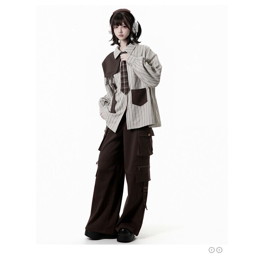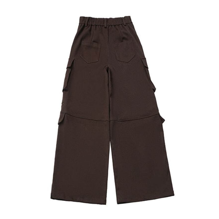 深みのあるブラウンをベースに、大きめのフラップポケットやベルト装飾を効かせた、ロリータパンク系の空気をまとえるワイドパンツです。甘さだけではない重厚感のある表情が魅力で、トップスや小物の合わせ方次第で、クラシカルにも退廃的にも寄せられる存在感のある1本に仕上がっています。