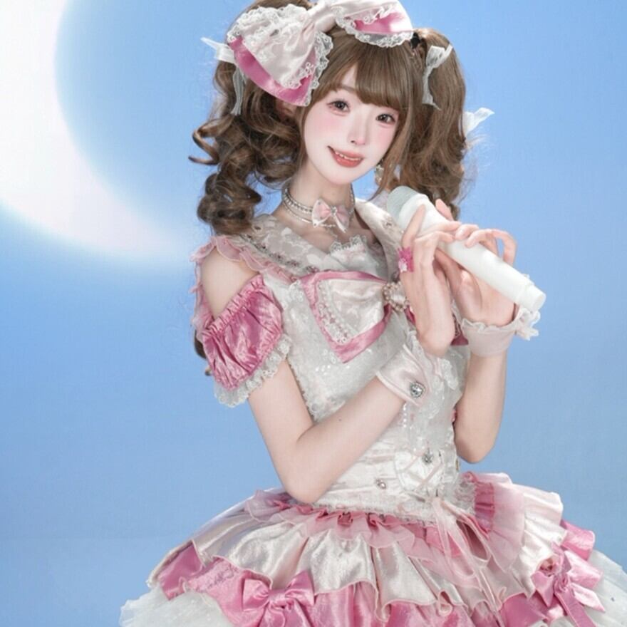 甘ロリ寄りの装飾性が高いデザインで、レースと淡色カラーにより可愛らしさを強調するウエストアクセサリーです。