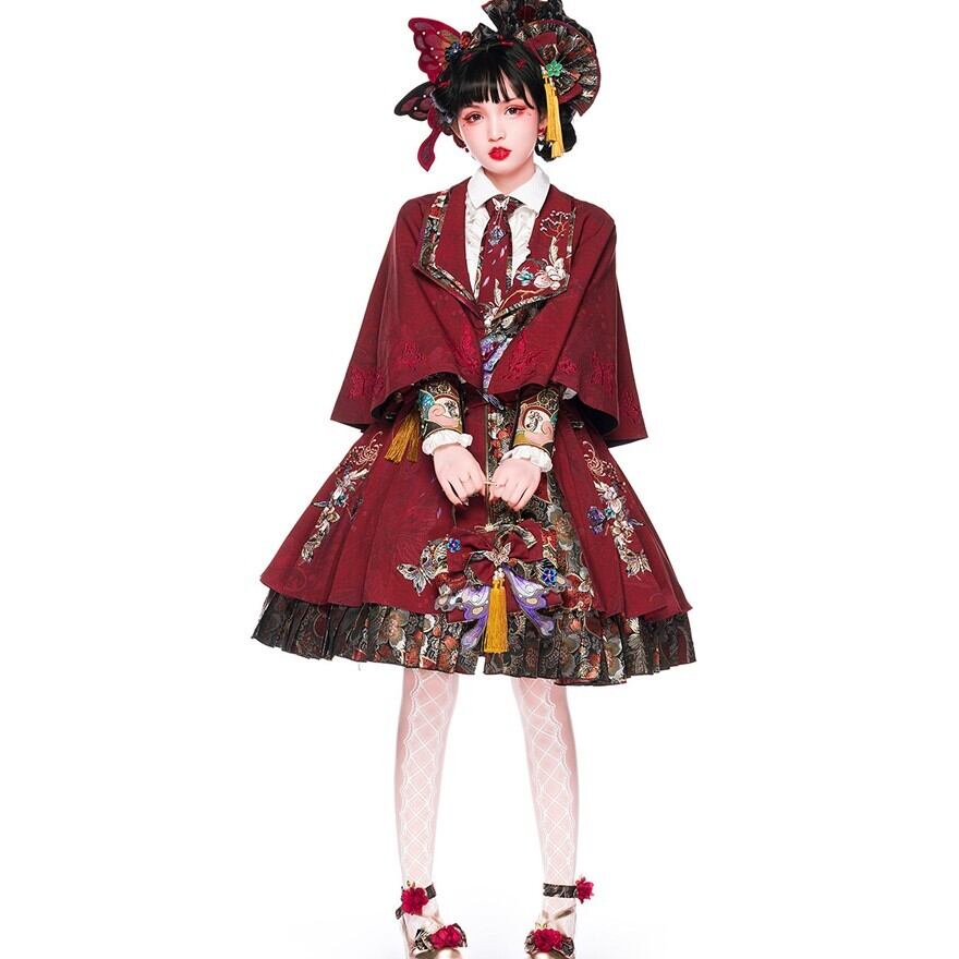 中華ロリィタ ケープ フラワー刺繍×ショート丈|JSK重ね着に馴染むレイヤードデザイン|Alicestyle