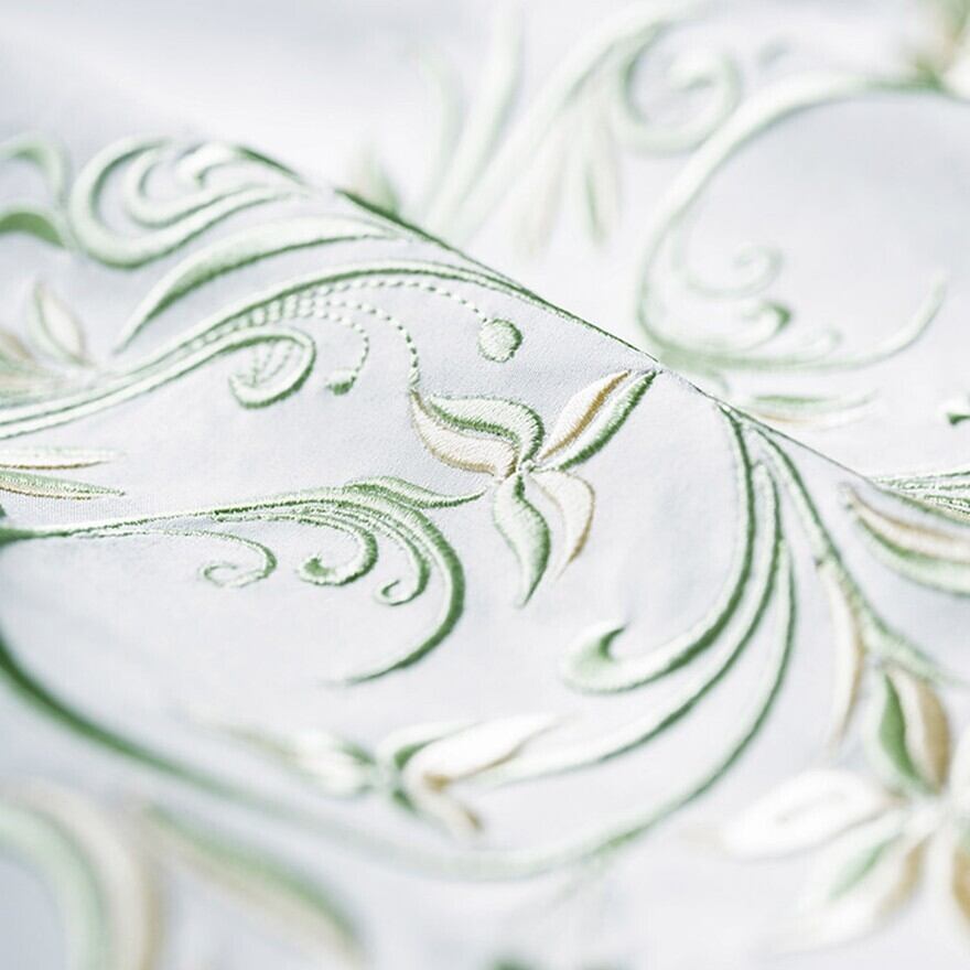 ・お茶会やアフタヌーンティーに。落ち着いた色味と刺繍の上品さが、静かな華やかさを求める場にきれいになじみます。