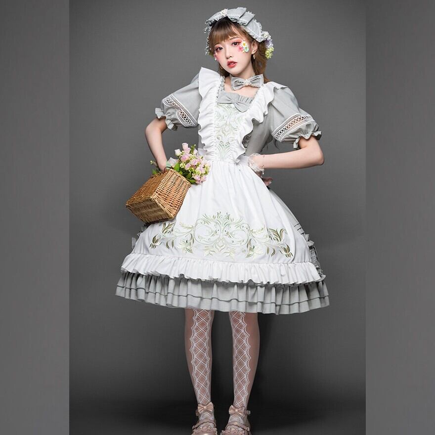クラシカルロリータ|エプロン刺繍ワンピース フリル襟で上品に映える1着|Alicestyle